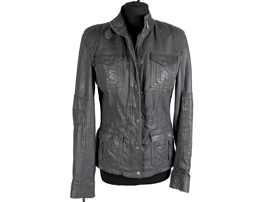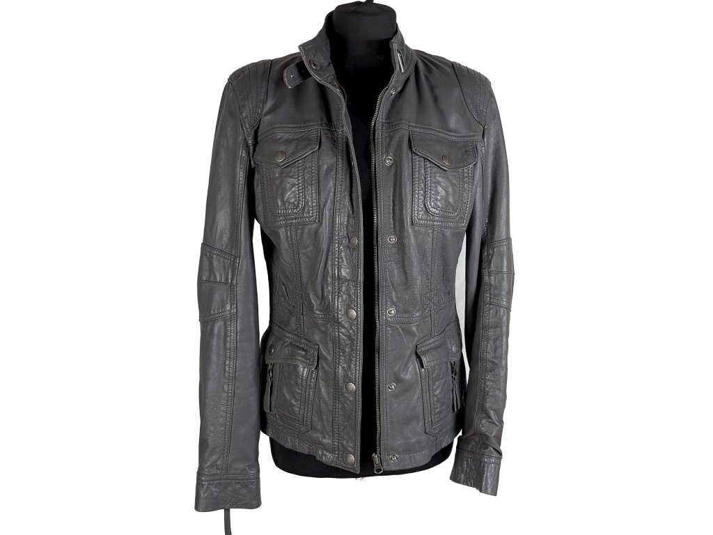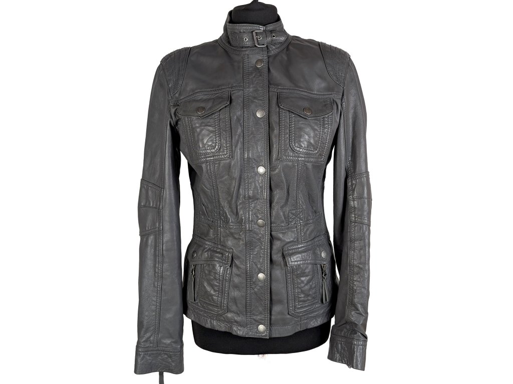 KOŽENÁ dámská šedá bunda na zip Street One 12/38
