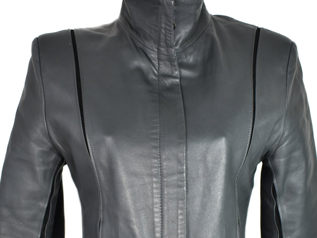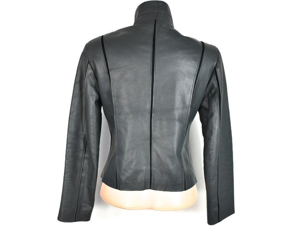 KOŽENÁ dámská šedá měkká zateplená bunda na zip M