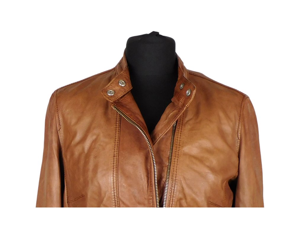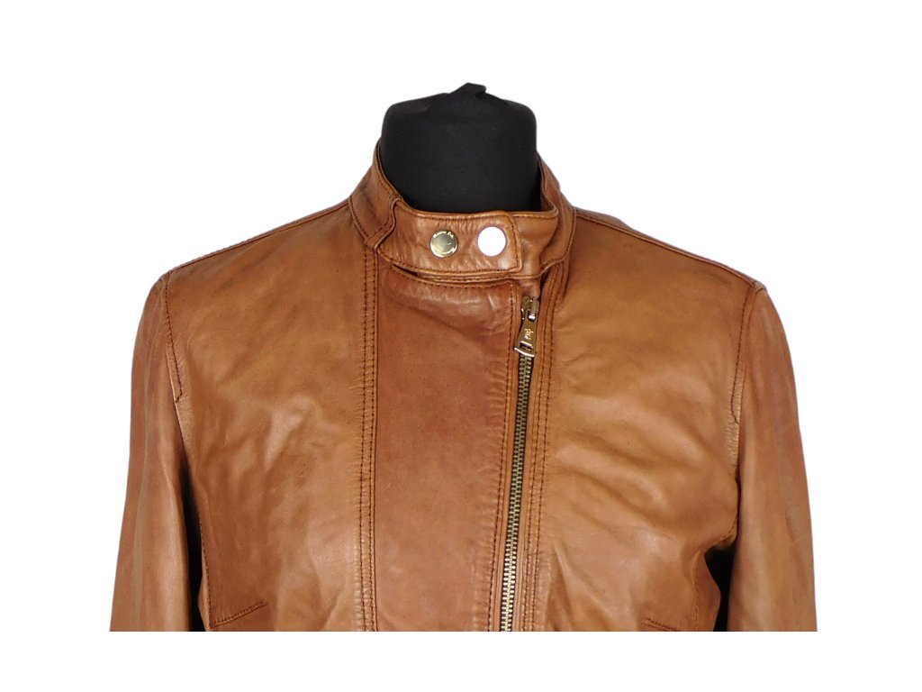 Kožená dámská tónovaná koňaková bunda MASSIMO DUTTI