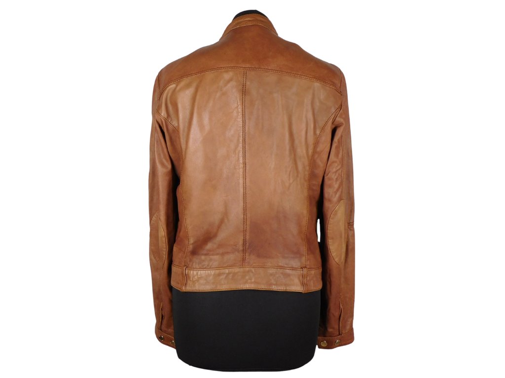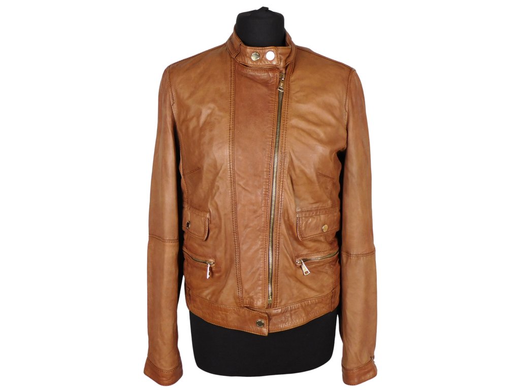 Kožená dámská tónovaná koňaková bunda MASSIMO DUTTI S*