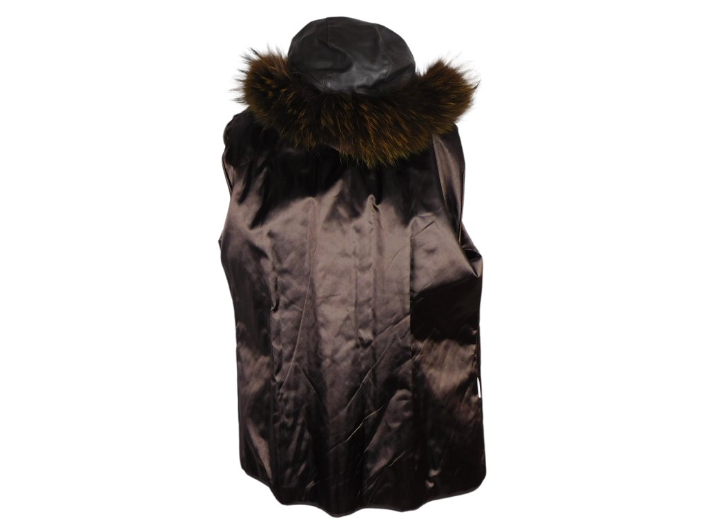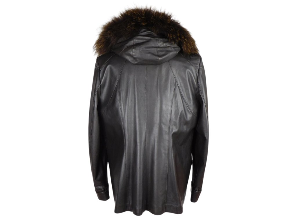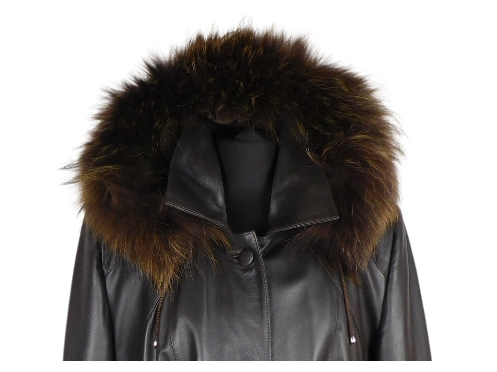 Kožená tmavě hnědá bunda s pravou kožešinou K STYLE
