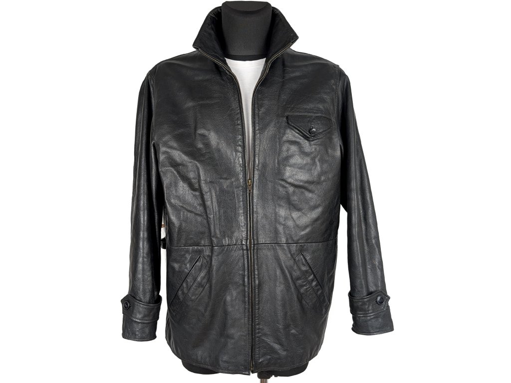 KOŽENÁ pánská černá zateplená bunda na zip Jinglers M