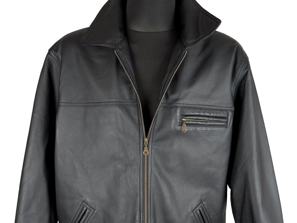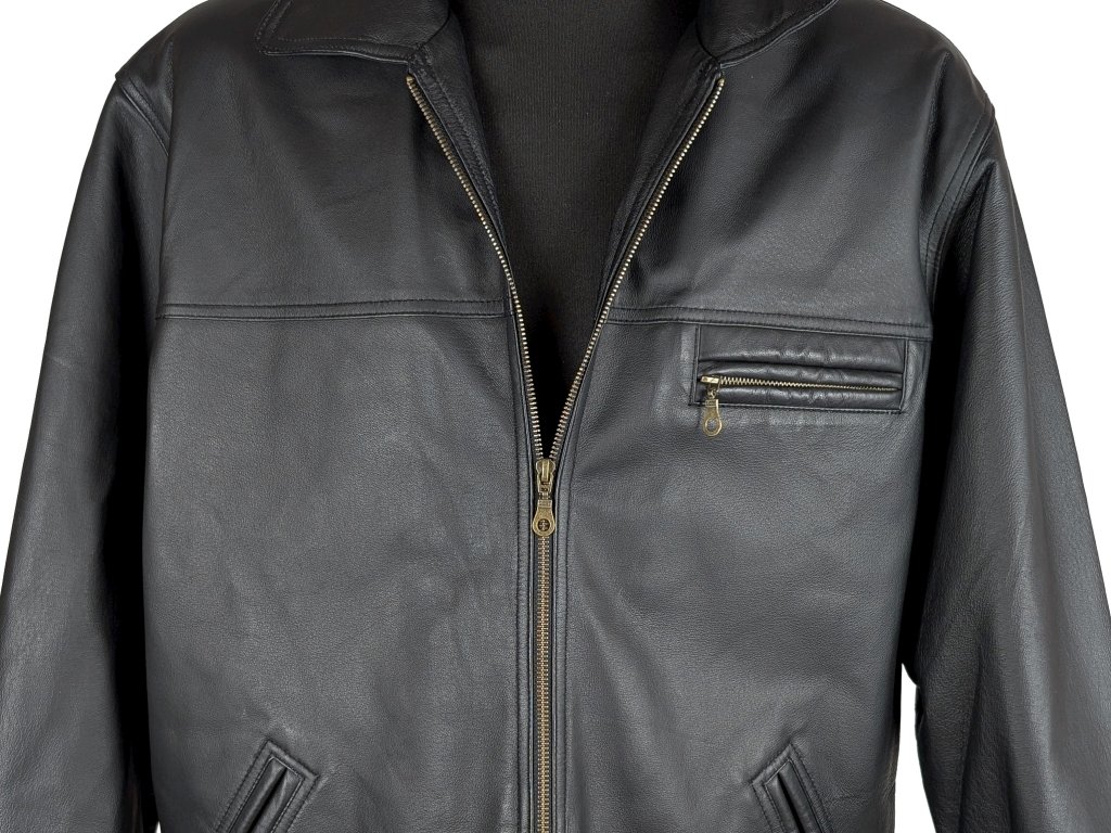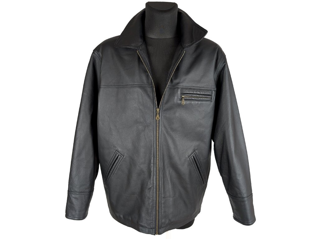 KOŽENÁ pánská černá zateplená bunda na zip XXL