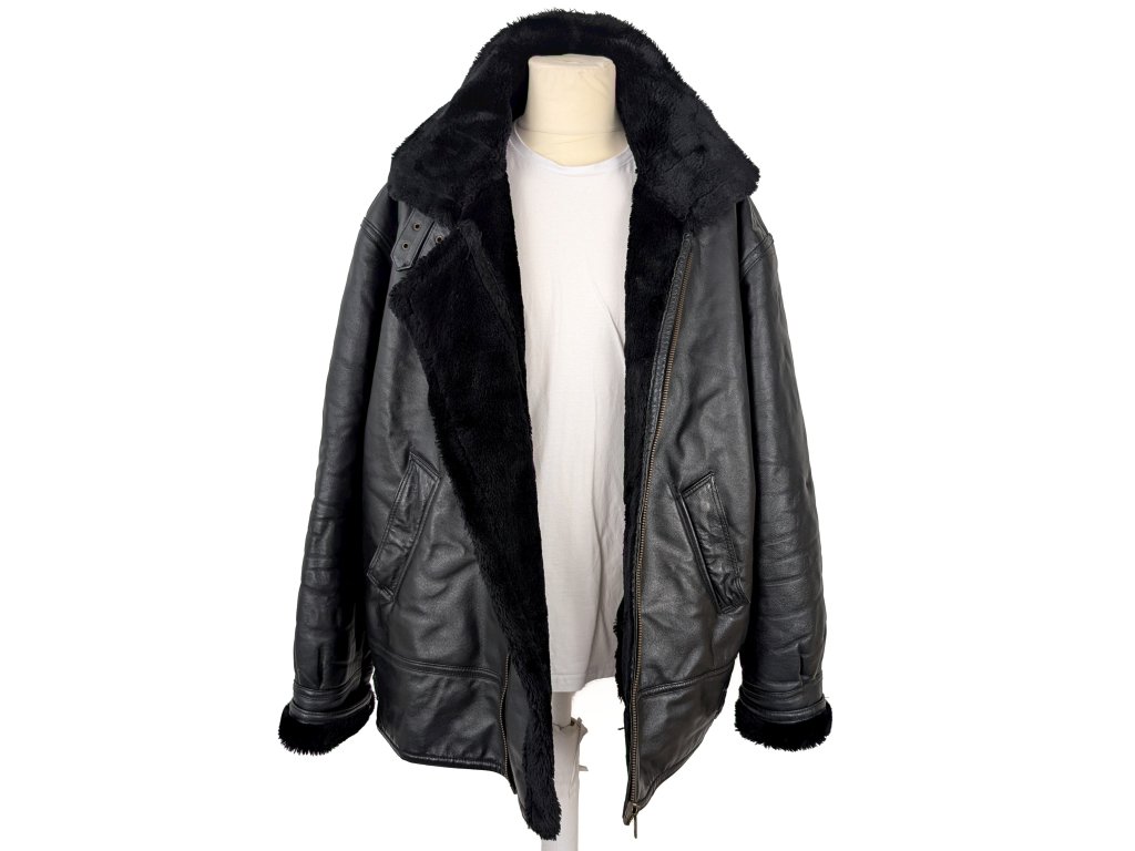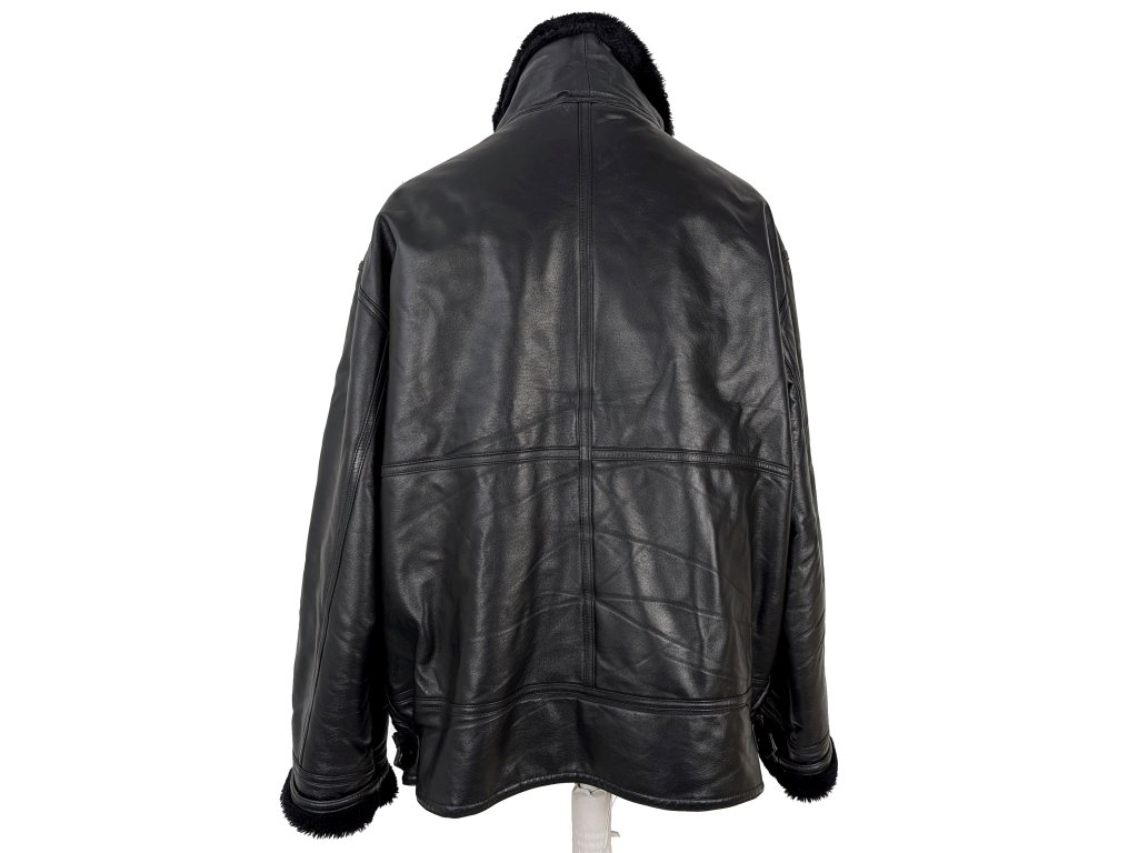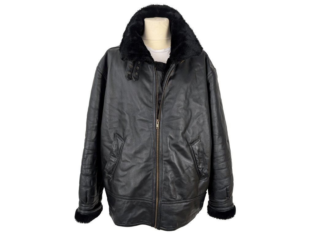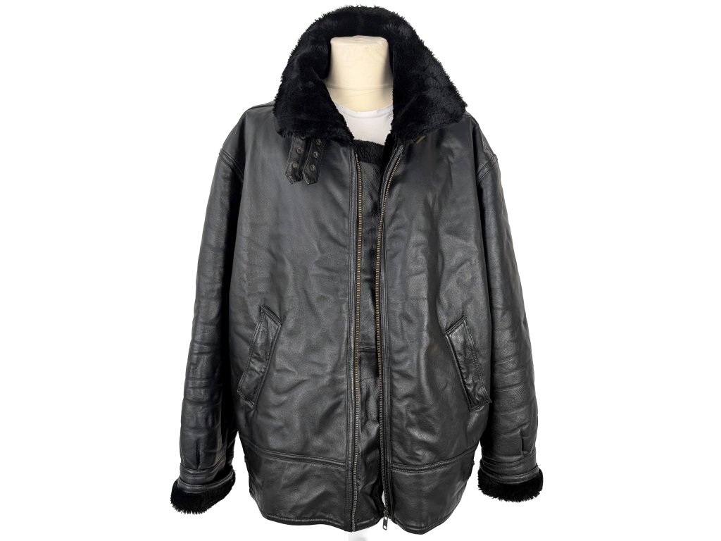 KOŽENÁ pánská černá zimní bunda s kožíškem XXXL