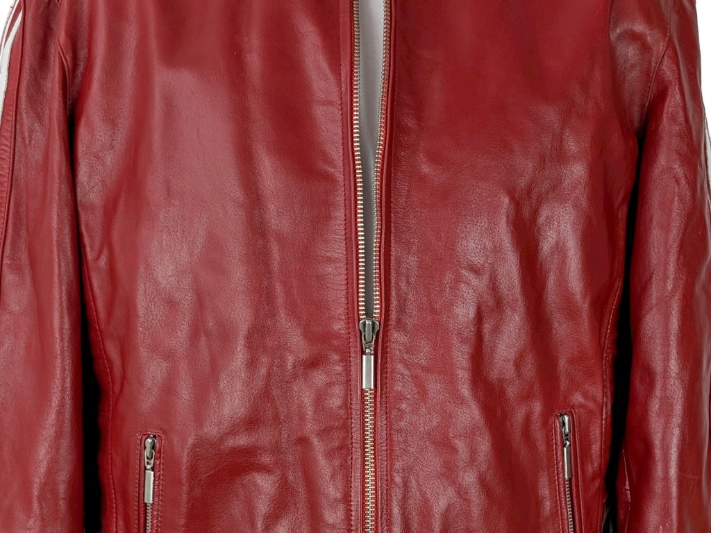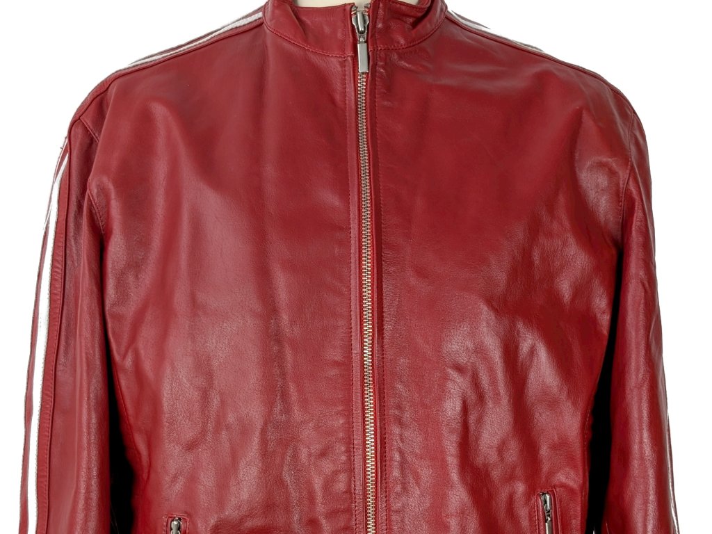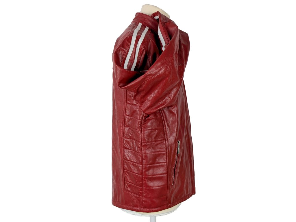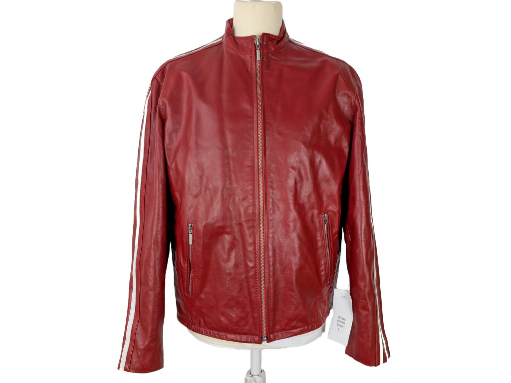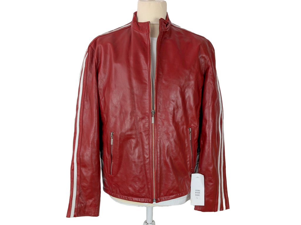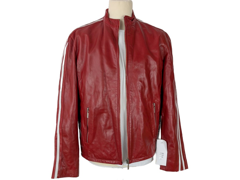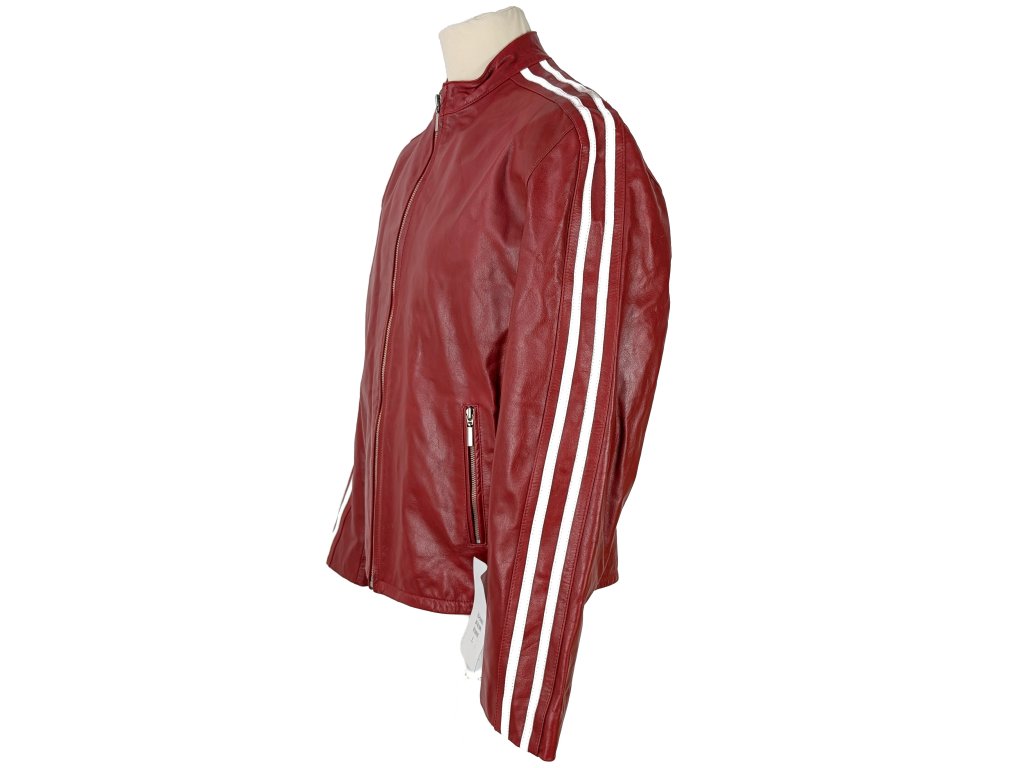KOŽENÁ pánská červená bunda na zip RACING TEAM L
