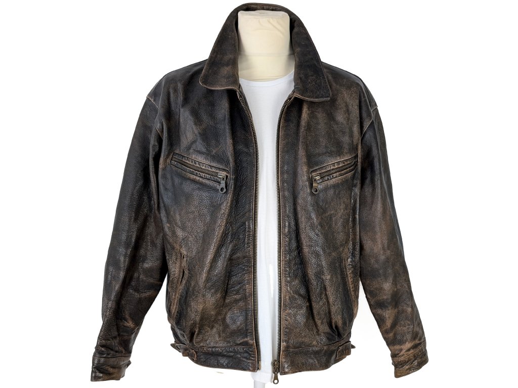 KOŽENÁ pánská hnědá bunda na zip GIPSY XL