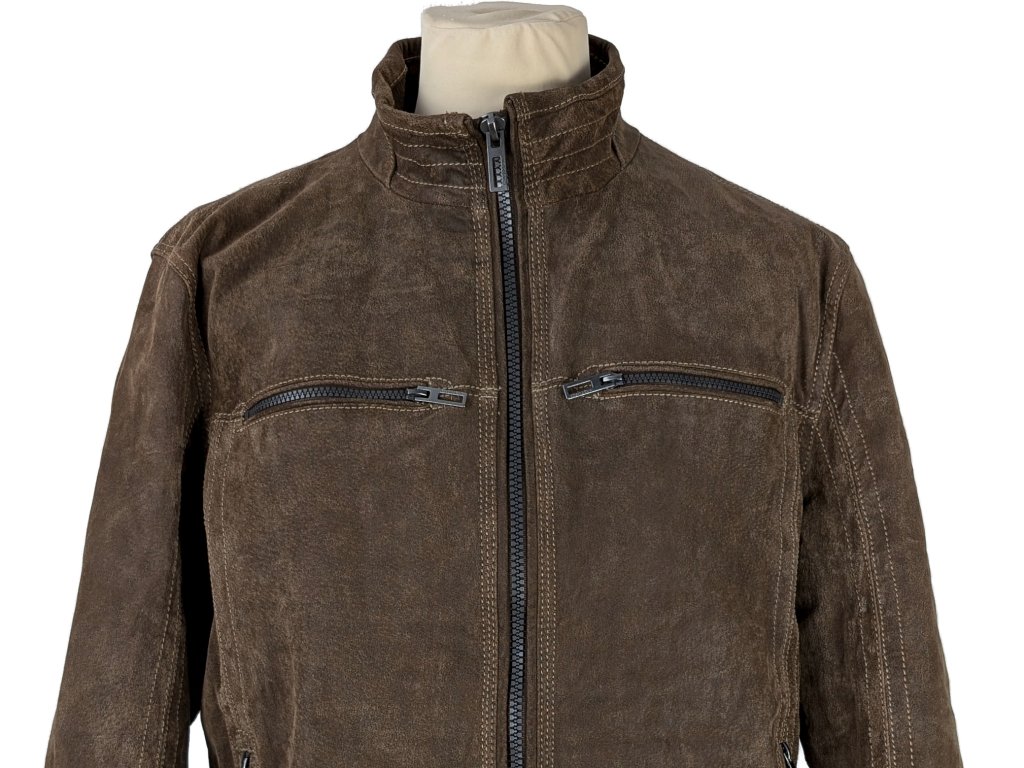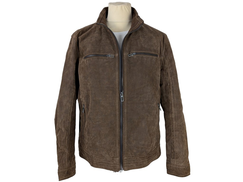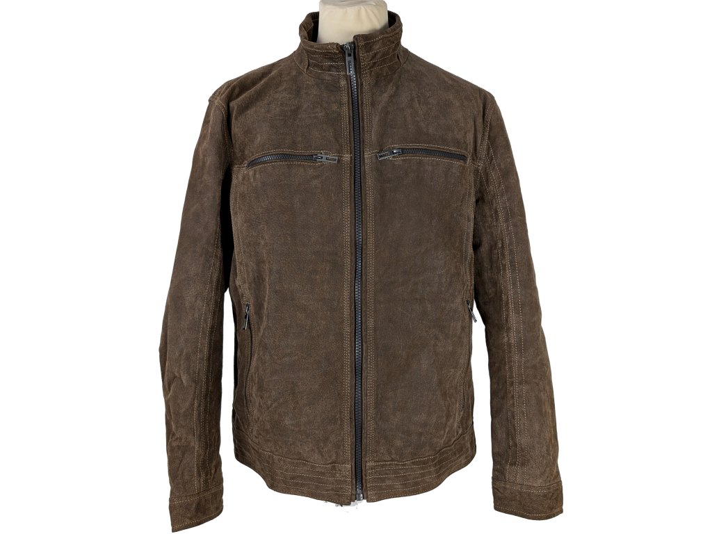 KOŽENÁ pánská hnědá zateplená bunda na zip Canda 54