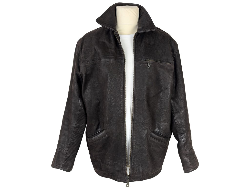 KOŽENÁ pánská hnědá zateplená bunda na zip Firenze XL