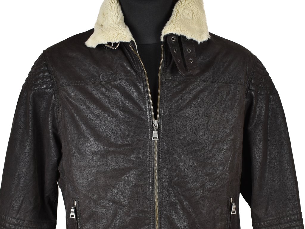 KOŽENÁ pánská hnědá zimní bunda na zip Angelo Litrico