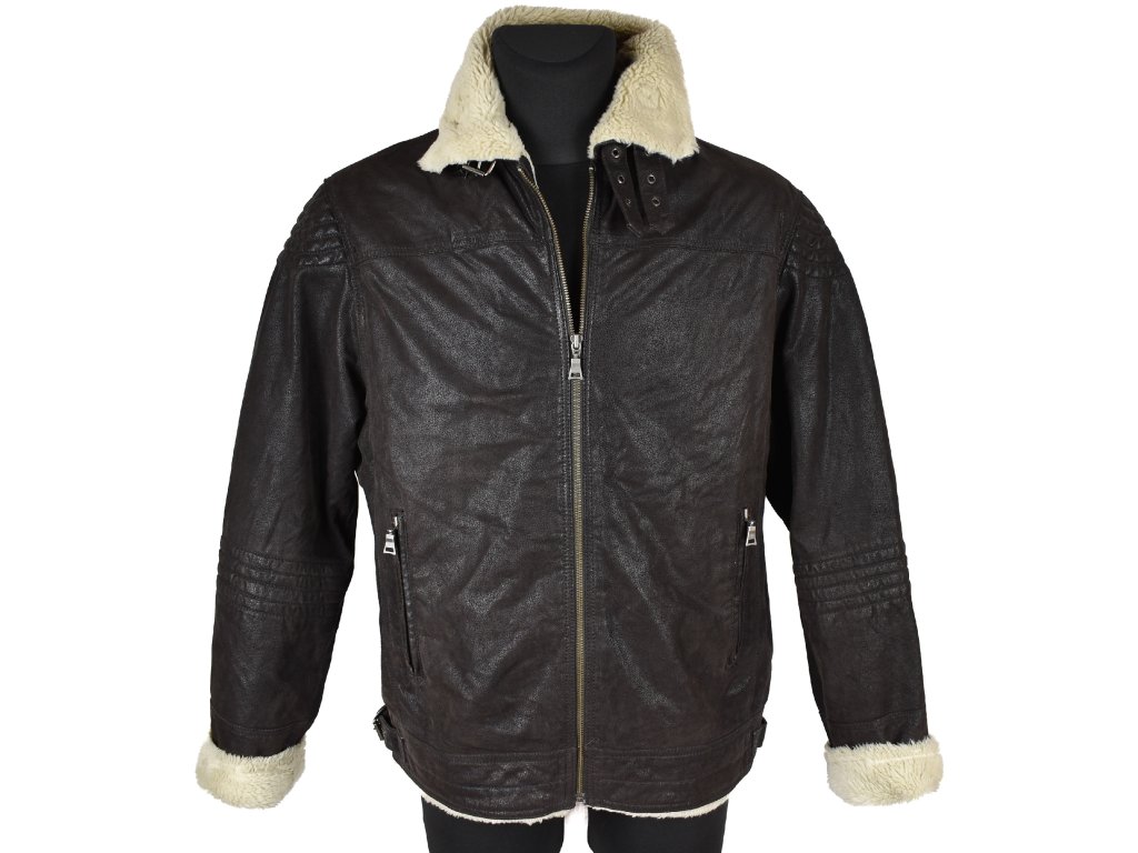 KOŽENÁ pánská hnědá zimní bunda na zip Angelo Litrico XXL