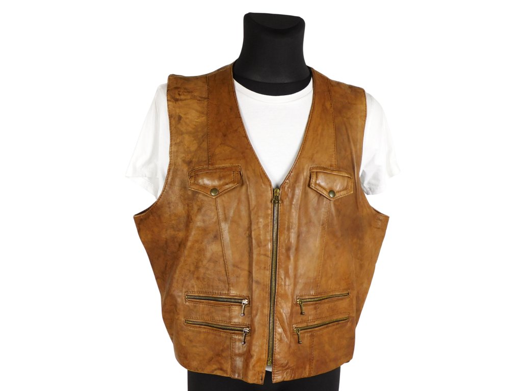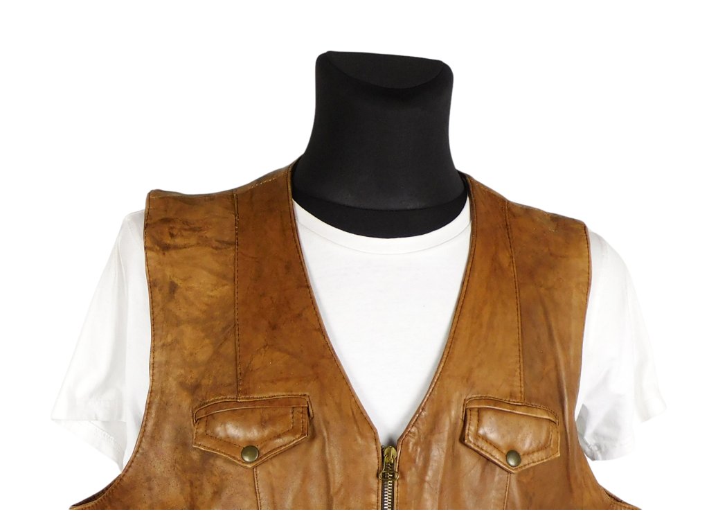 Kožená pánská tónovaná koňaková vesta ATLAS CUIR XXL*