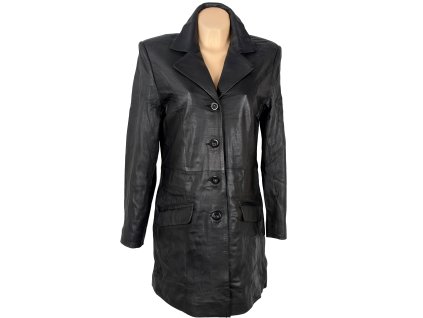 KOŽENÝ dámský černý kabát Woodpecker 20/46 Velikost 20/46 Prsa: 58 cm (116 cm obvod) Pas: 54 cm (108 cm obvod) Délka: 86 cm Rukáv: 60,5 cm/ 76...
