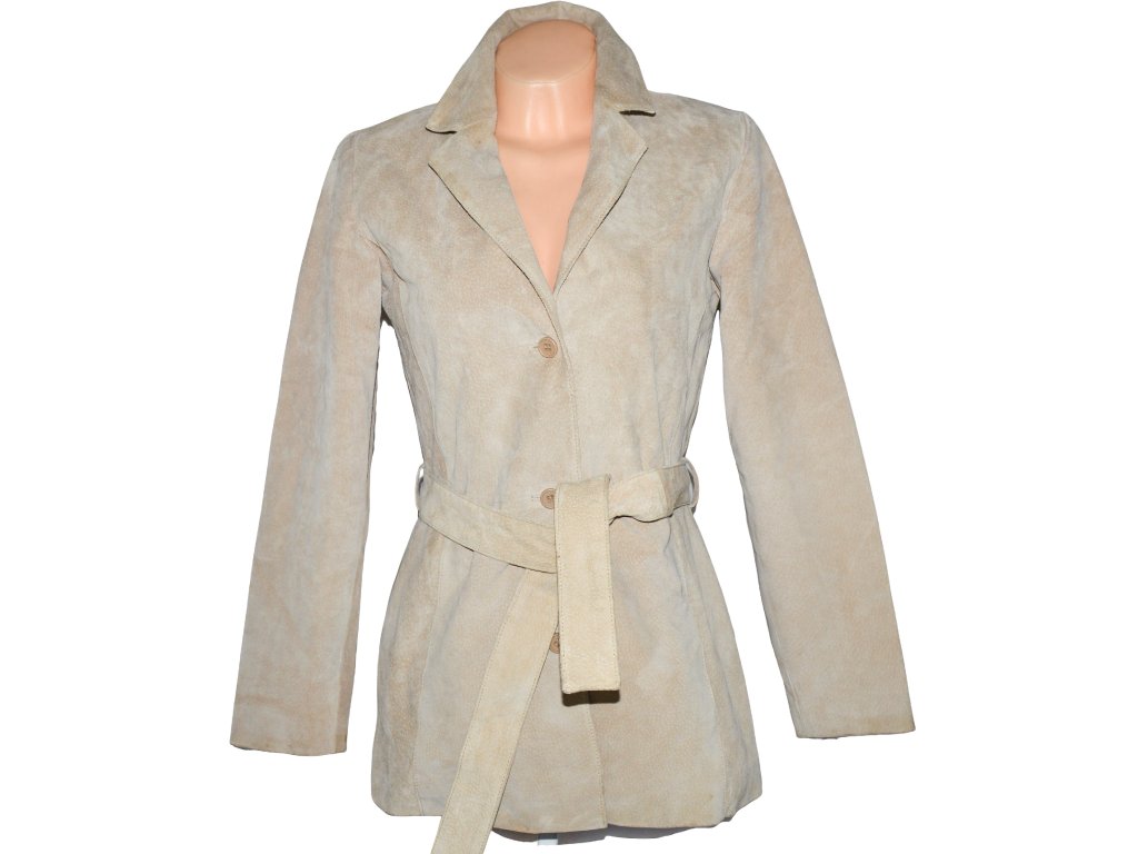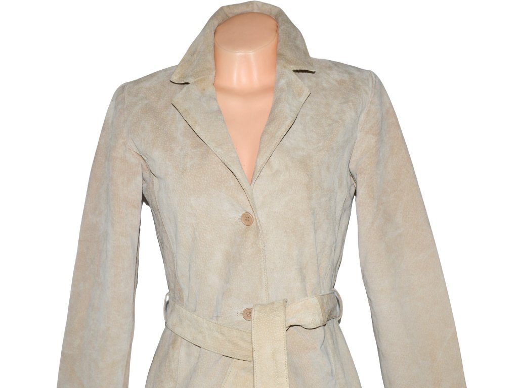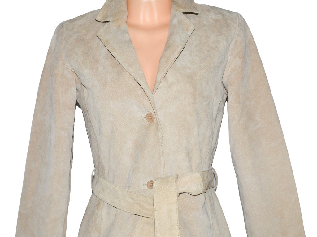 KOŽENÝ dámský béžový broušený kabát s páskem Outer Edge L