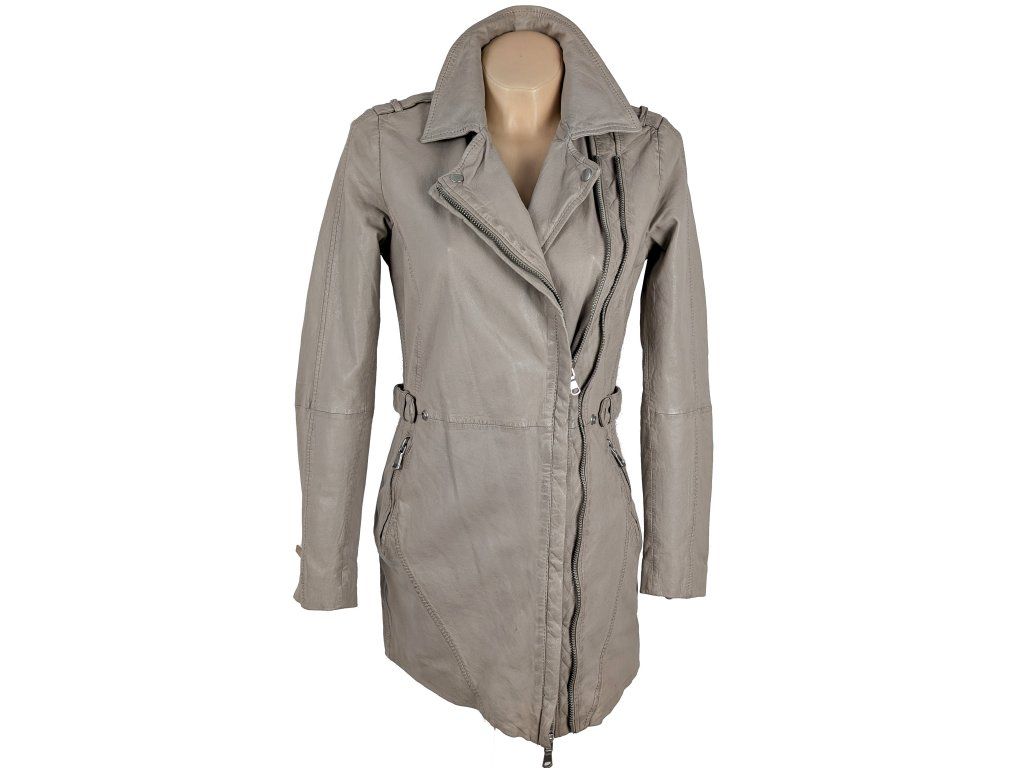 KOŽENÝ dámský béžový kabát - křivák Freaky Nation S