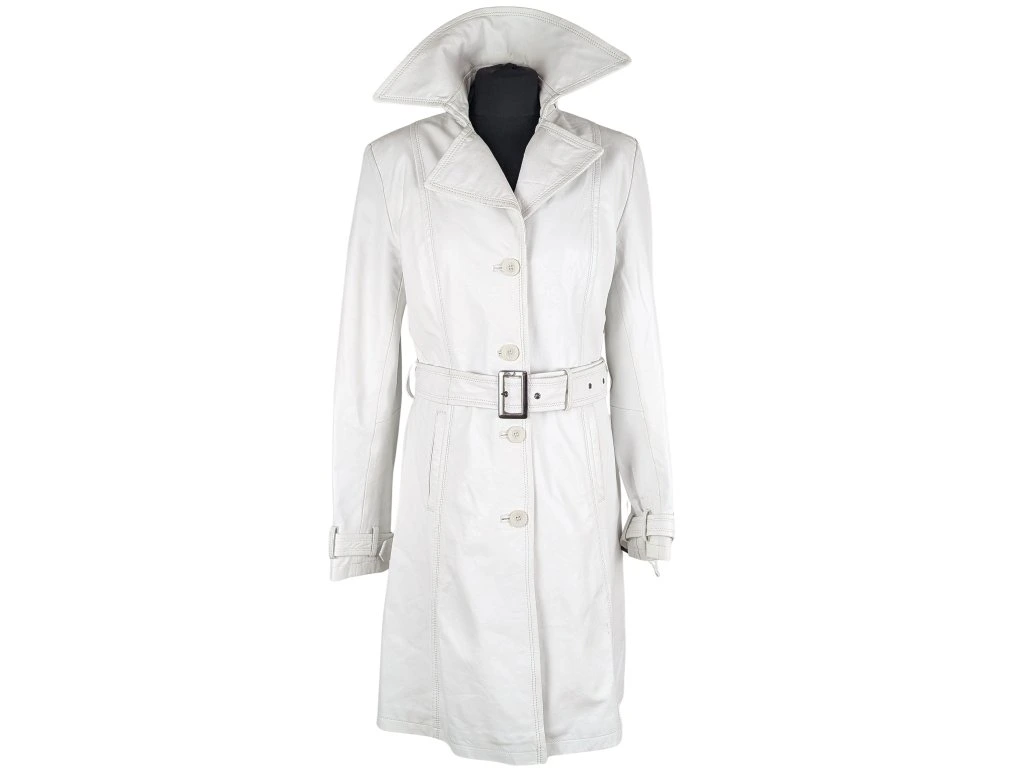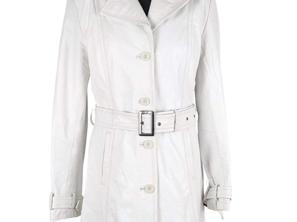 KOŽENÝ dámský bílý kabát s páskem KARA M