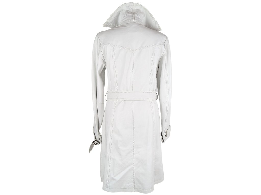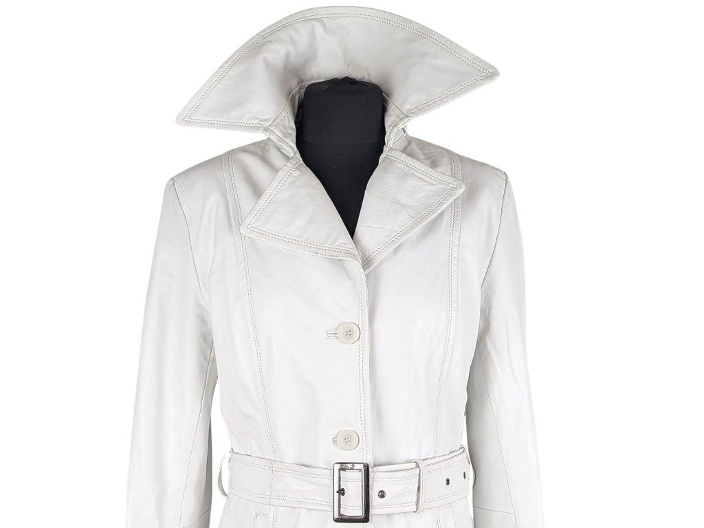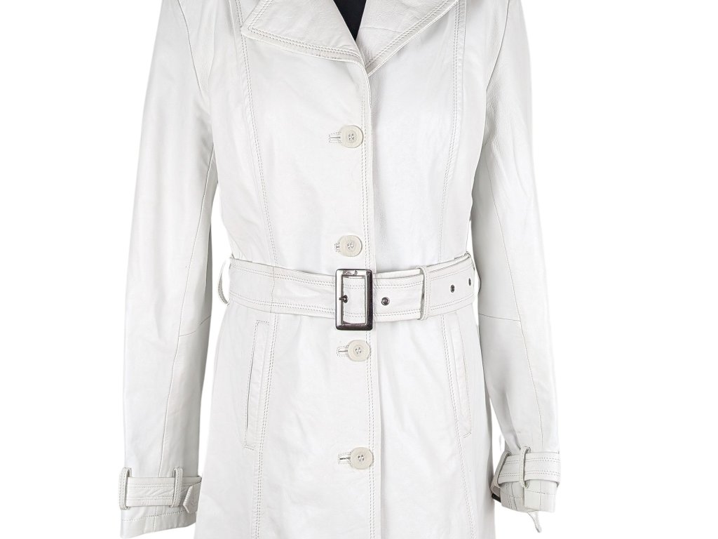 KOŽENÝ dámský bílý kabát s páskem KARA M