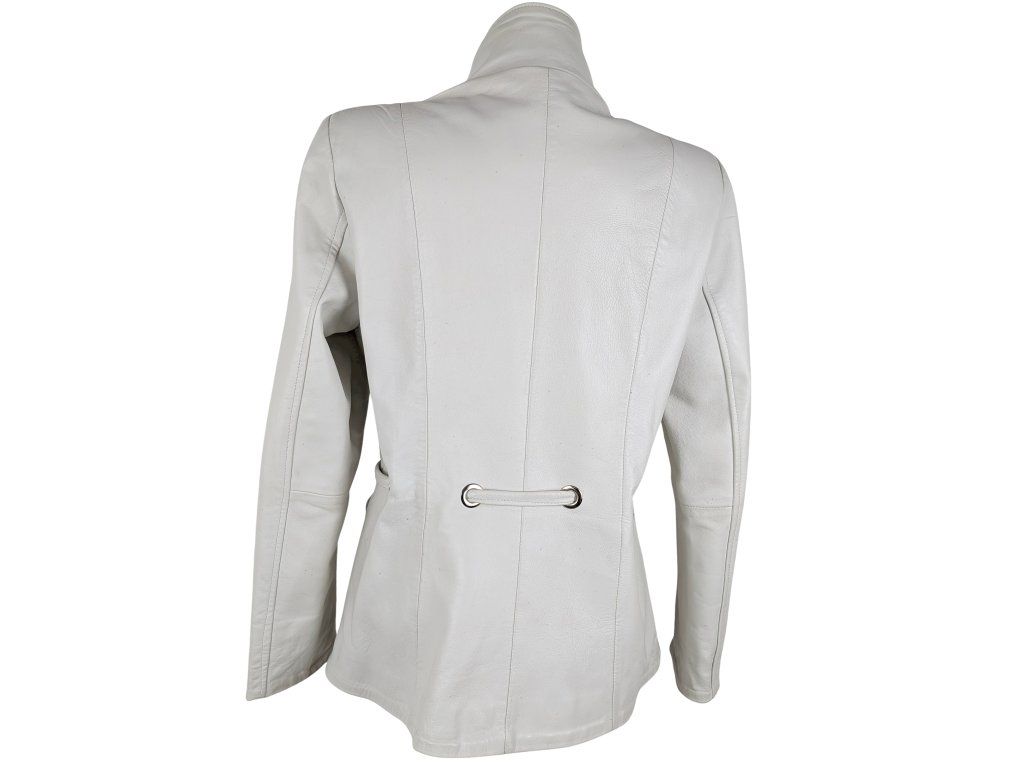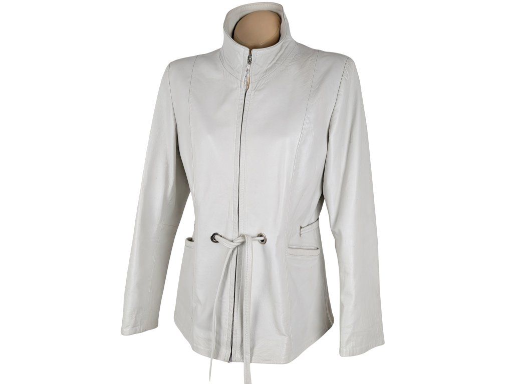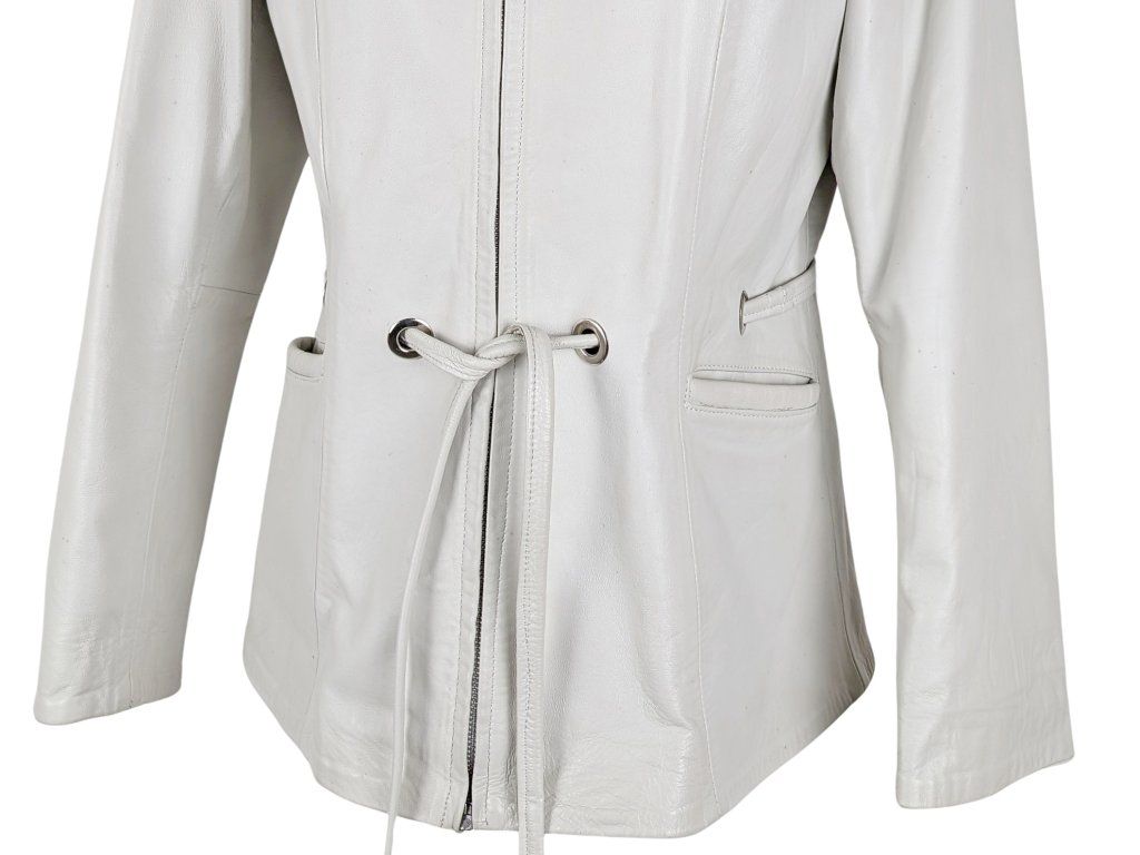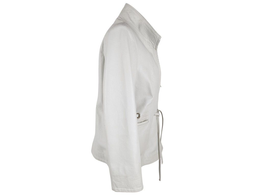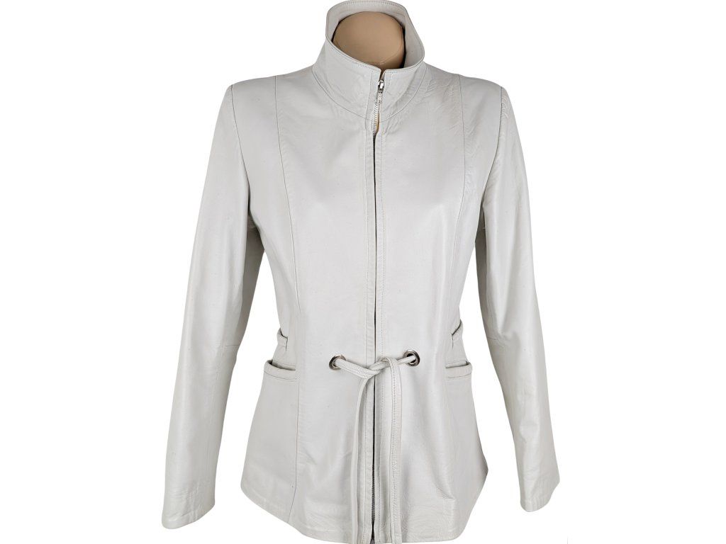 KOŽENÝ dámský bílý kabátek s páskem L