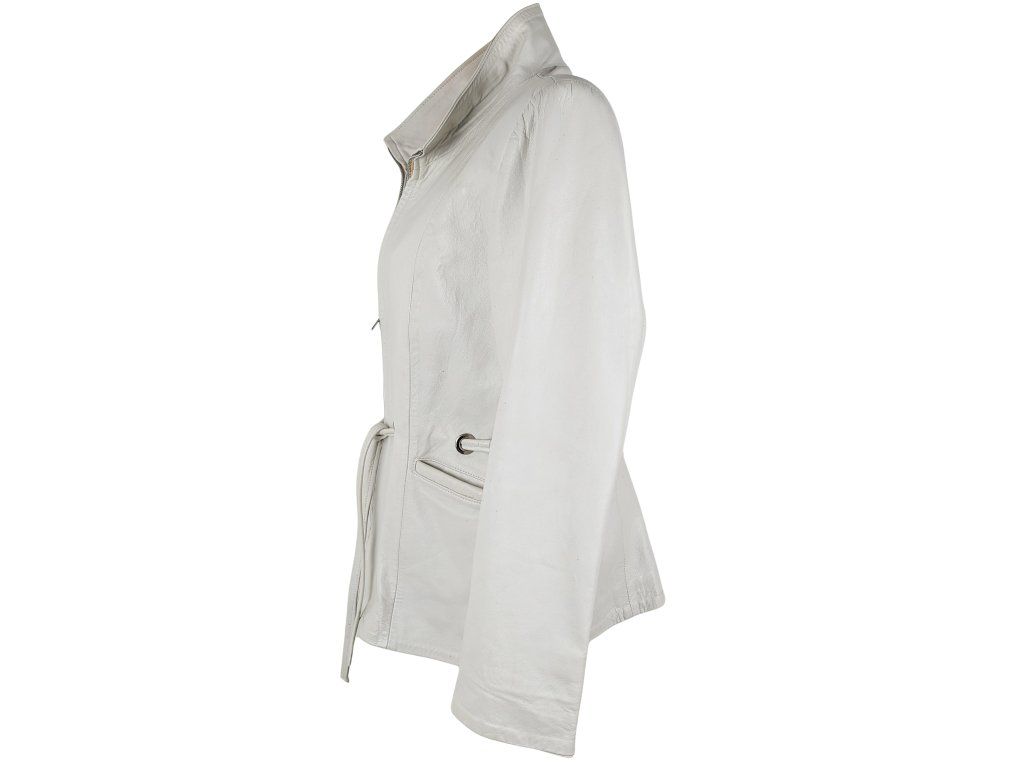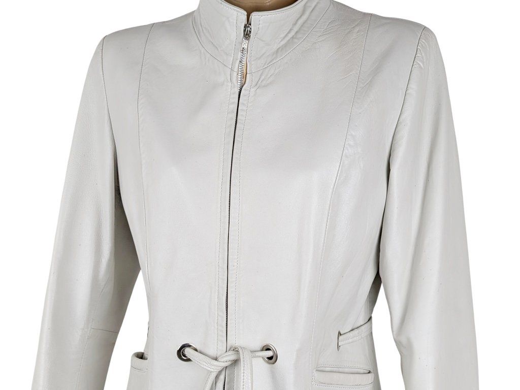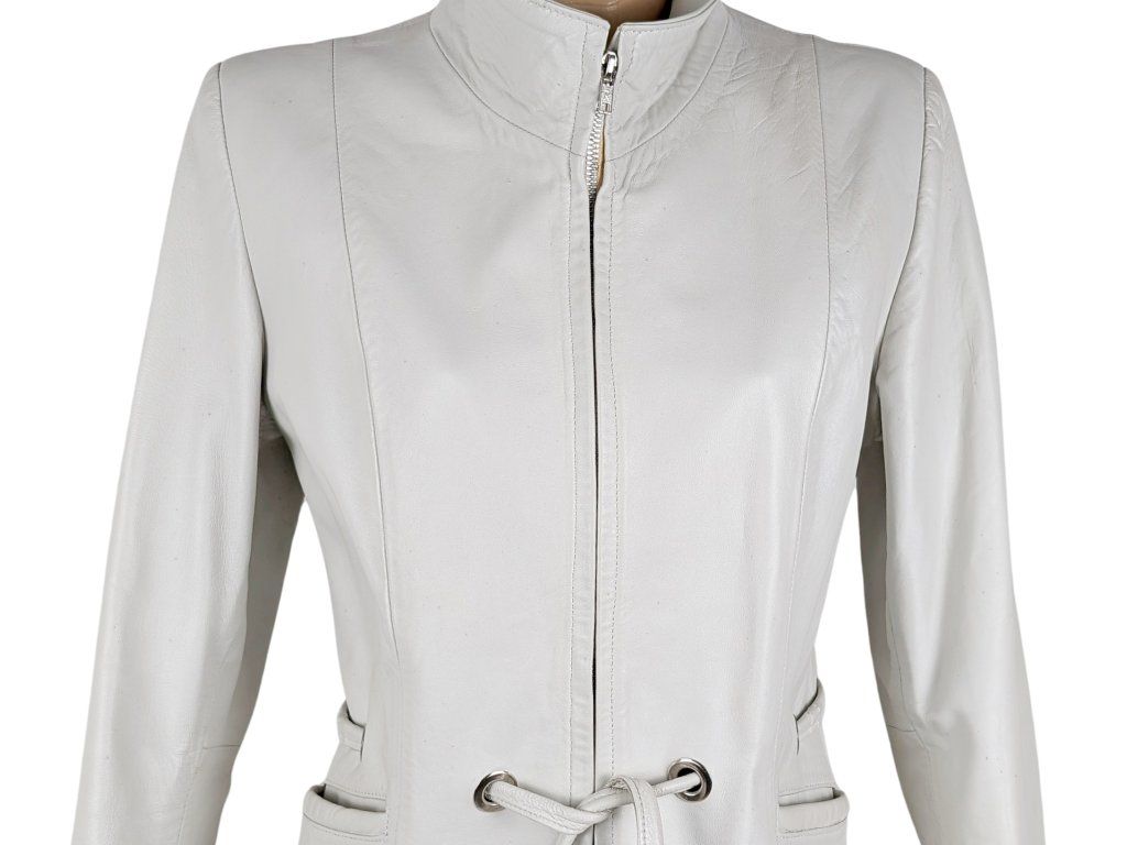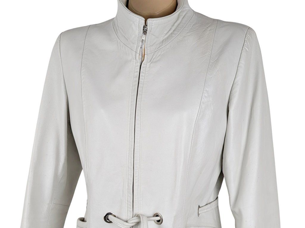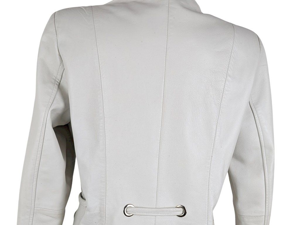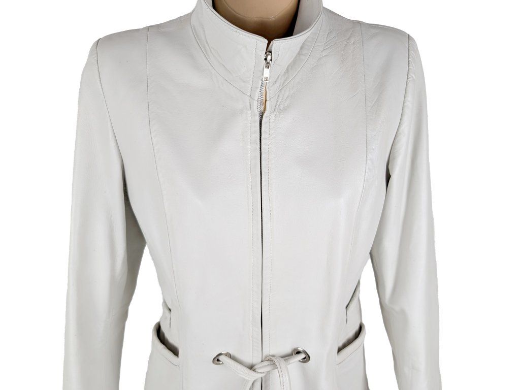 KOŽENÝ dámský bílý kabátek s páskem L