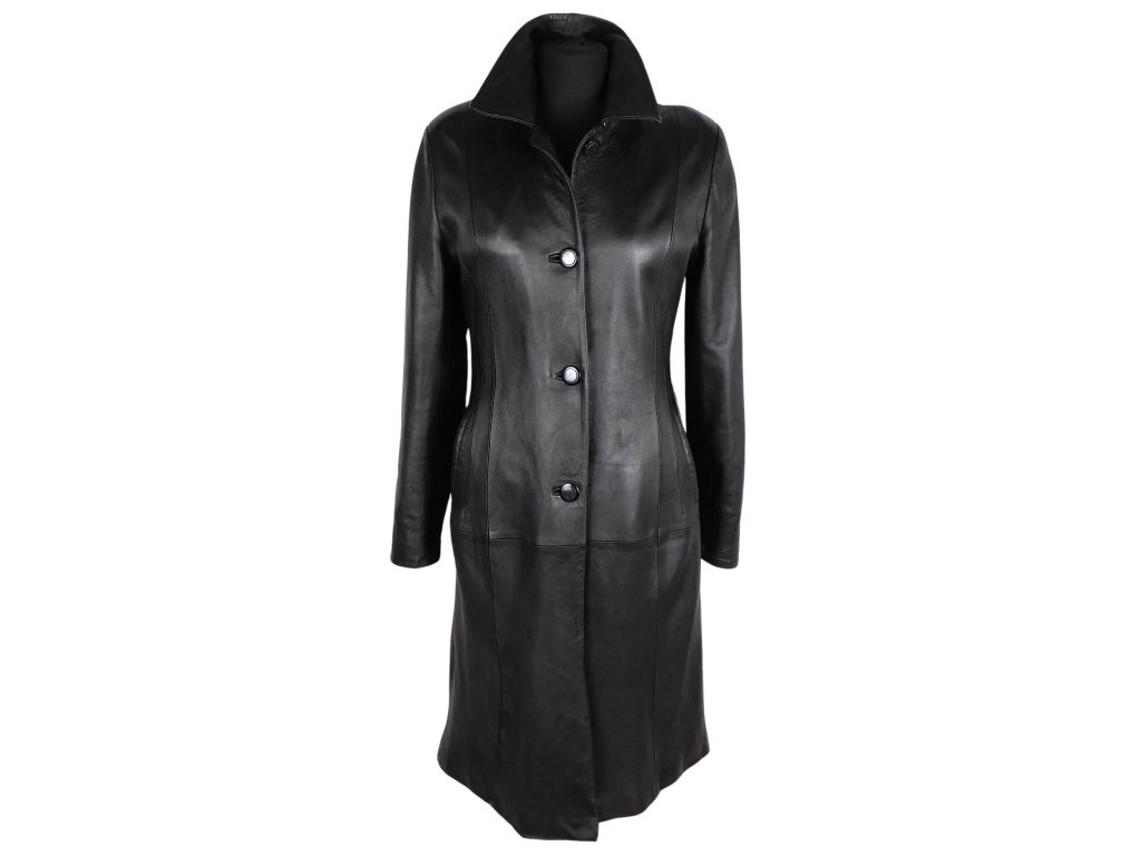 Kožený dámský černý dlouhý kabát ASLIM S*