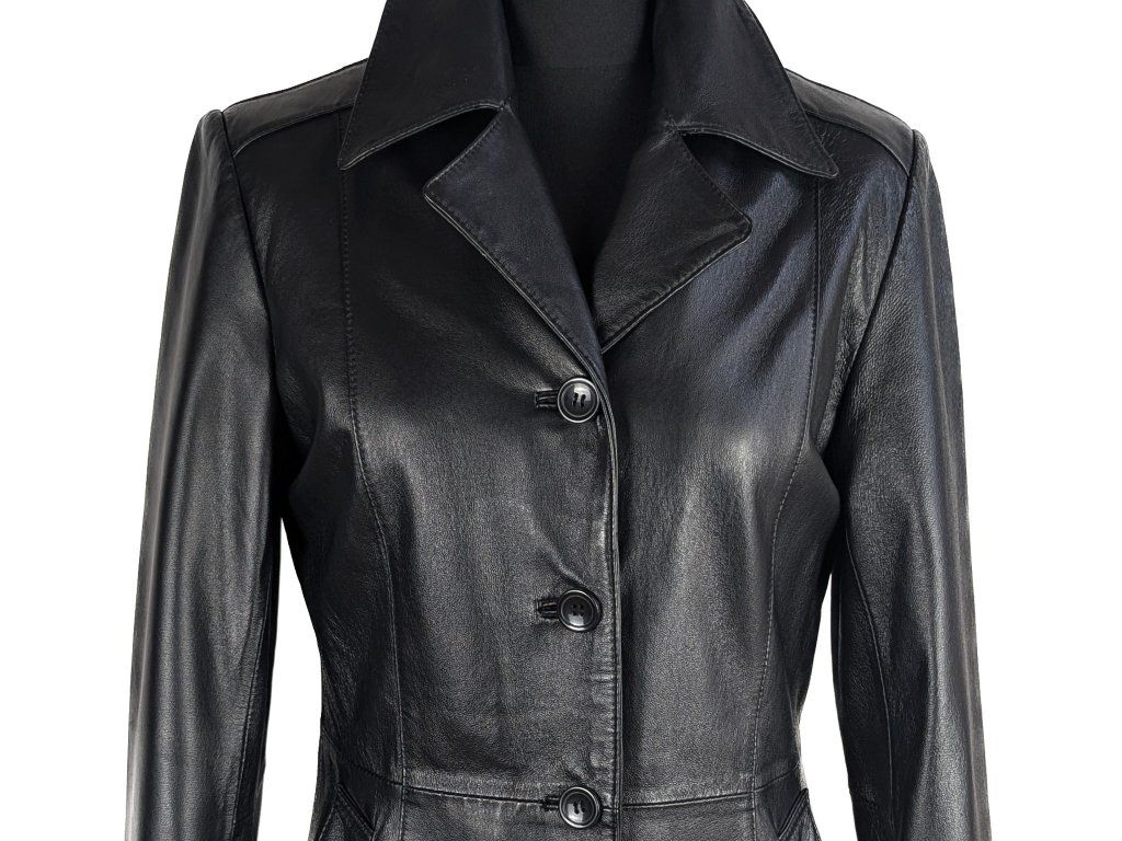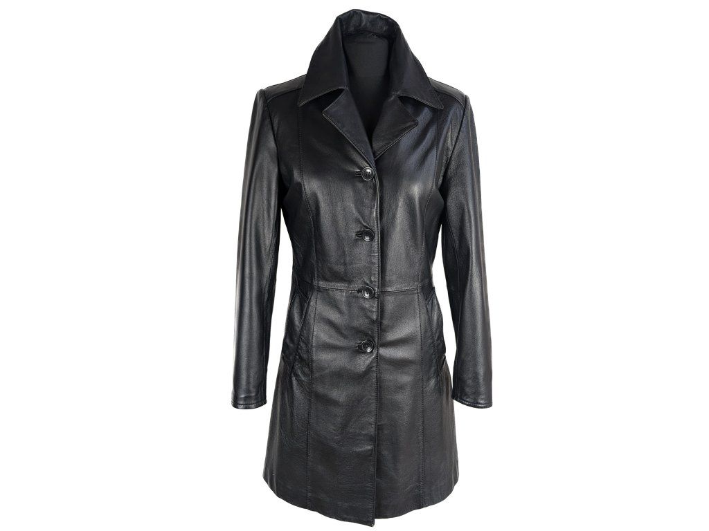 Calypso, dámský kožený kabát, černý, jednořadý, měkká kůže