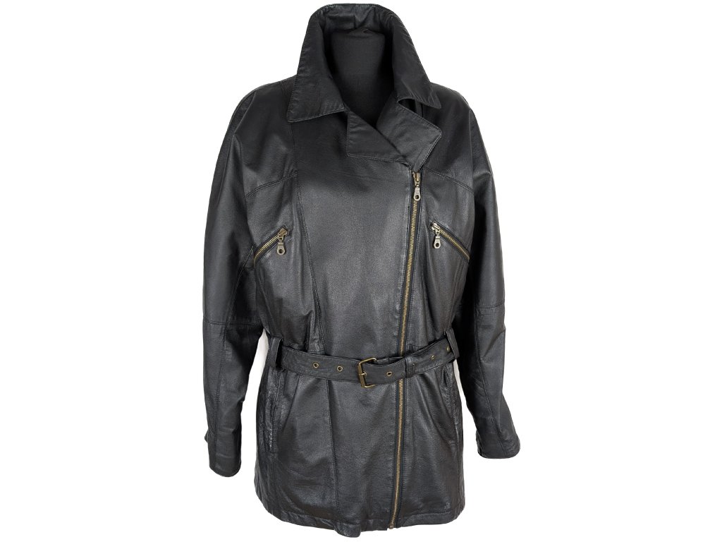 KOŽENÝ dámský černý kabát - křivák s páskem Canda XXL