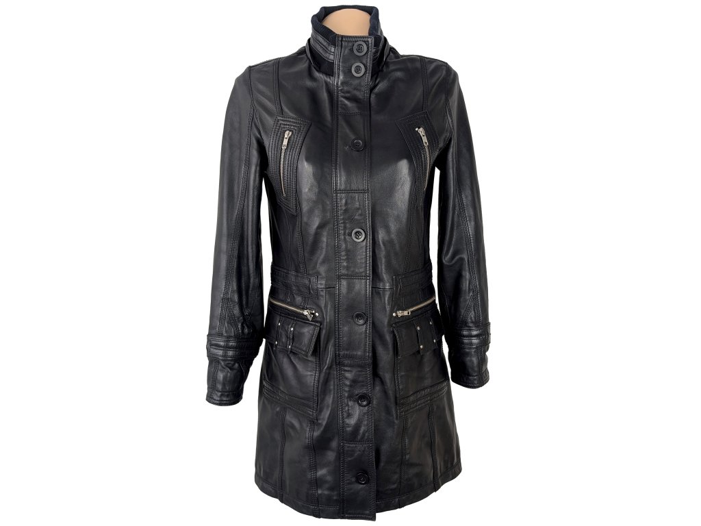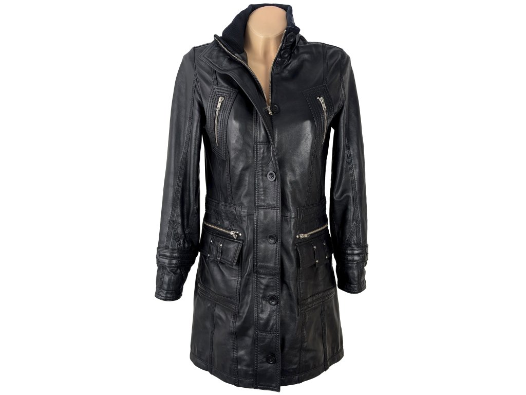 KOŽENÝ dámský černý kabát na zip KARA 36