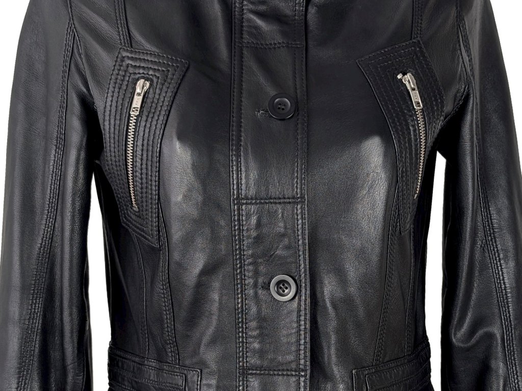 KOŽENÝ dámský černý kabát na zip KARA 36