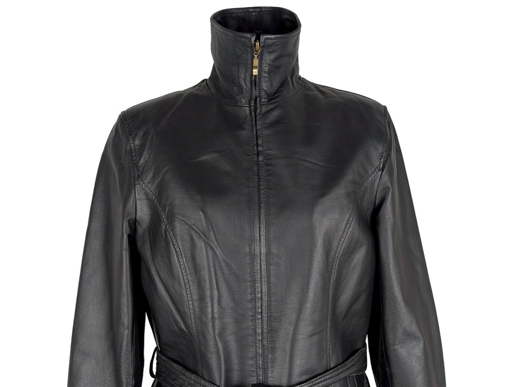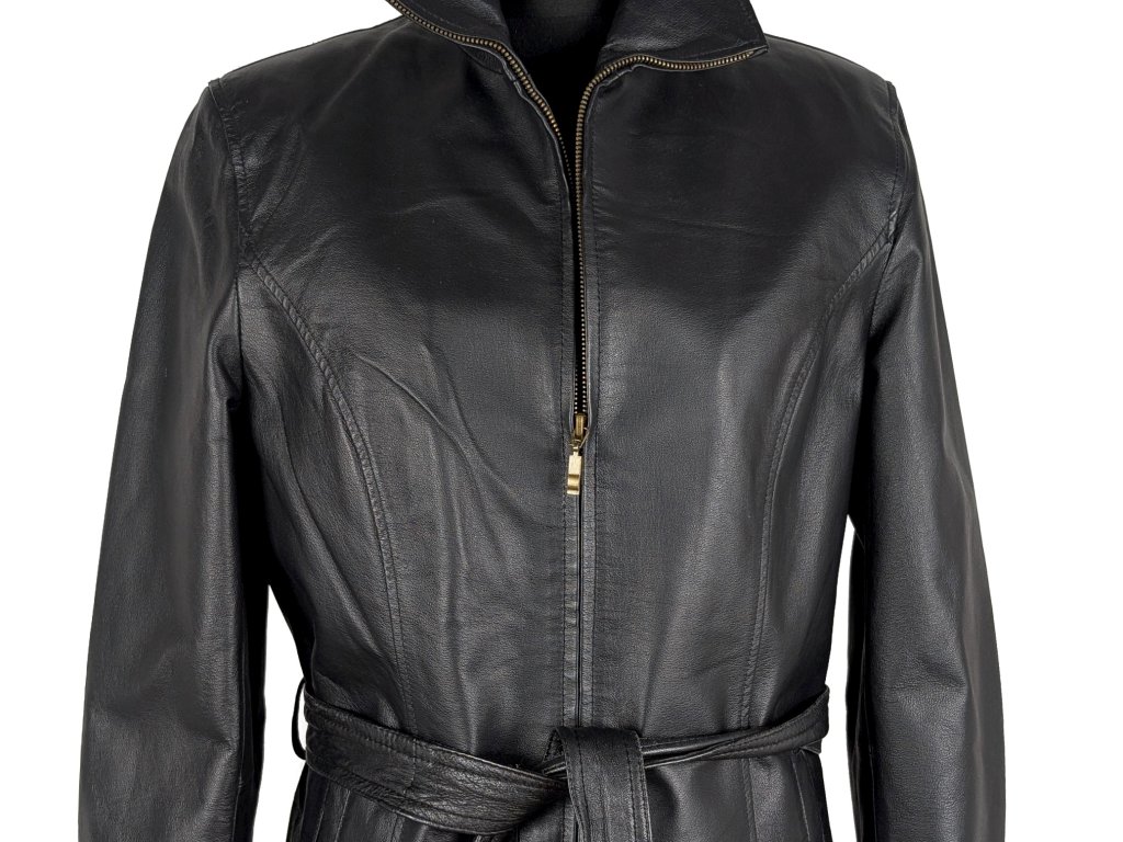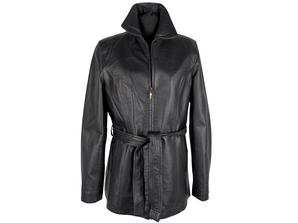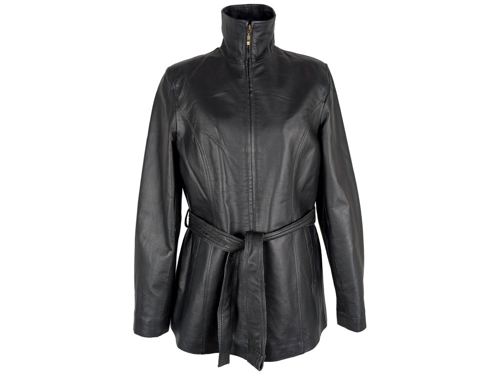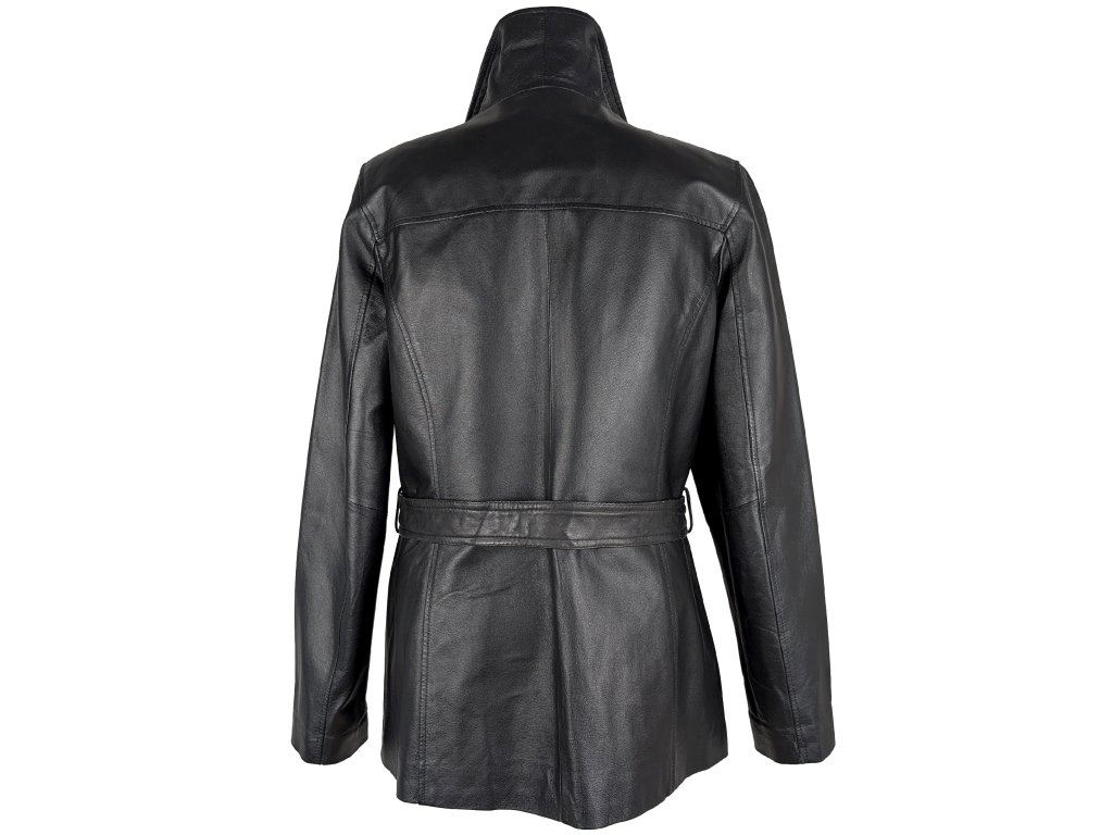 KOŽENÝ dámský černý kabát na zip s páskem K Cero L