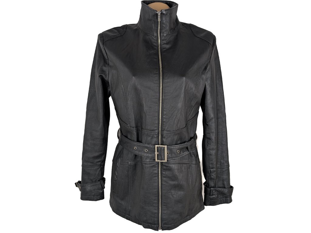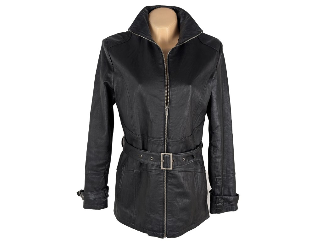 KOŽENÝ dámský černý kabát na zip s páskem KARA L