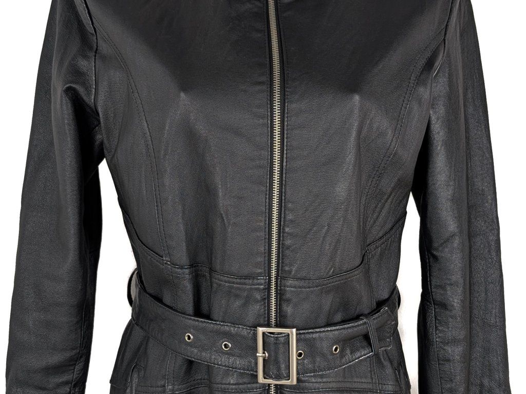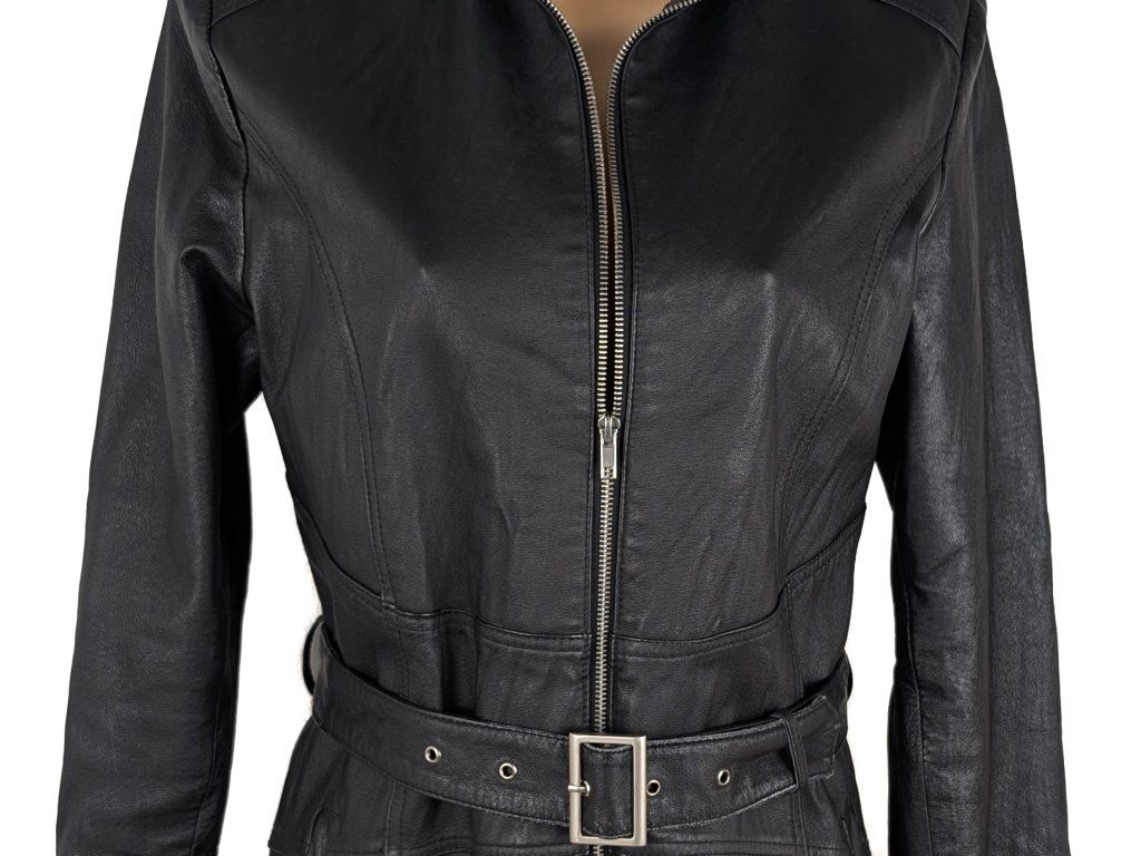 KOŽENÝ dámský černý kabát na zip s páskem KARA L