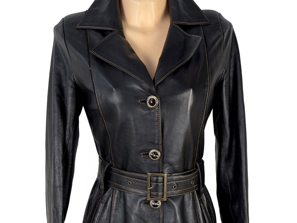 KOŽENÝ dámský černý kabát s páskem K-Style S