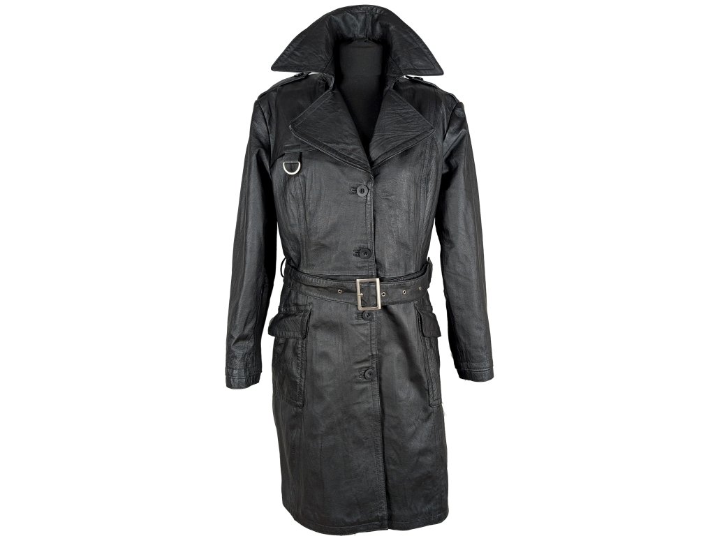 KOŽENÝ dámský černý kabát s páskem KARA XXL
