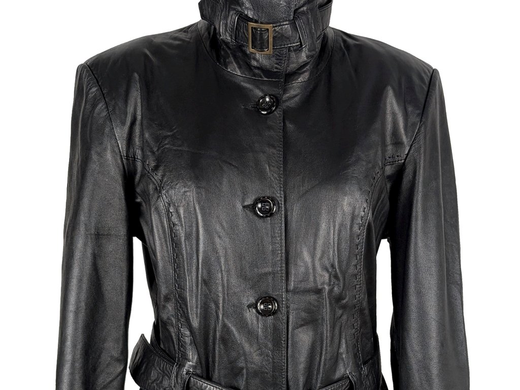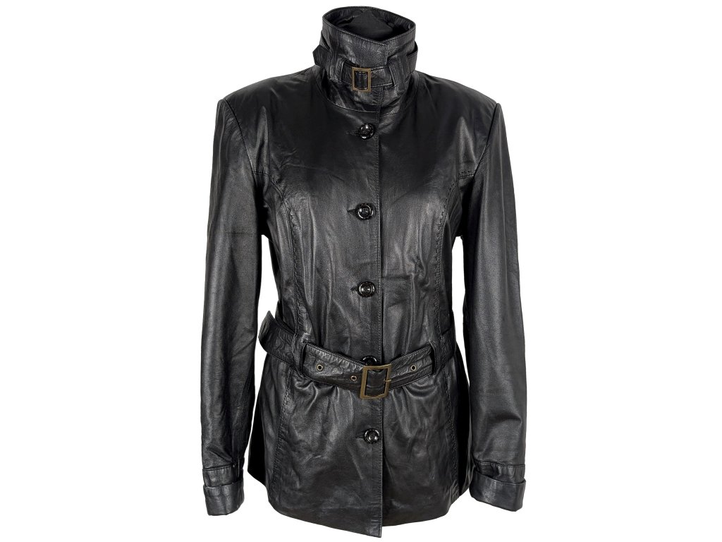 KOŽENÝ dámský černý kabátek s páskem 42