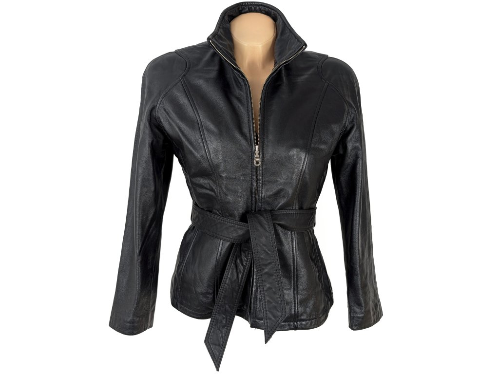 KOŽENÝ dámský černý kabátek s páskem Wilsons Leather S