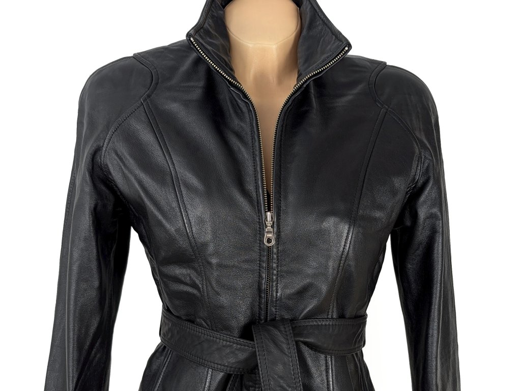 KOŽENÝ dámský černý kabátek s páskem a odnímatelnou vložkou Wilsons Leather S