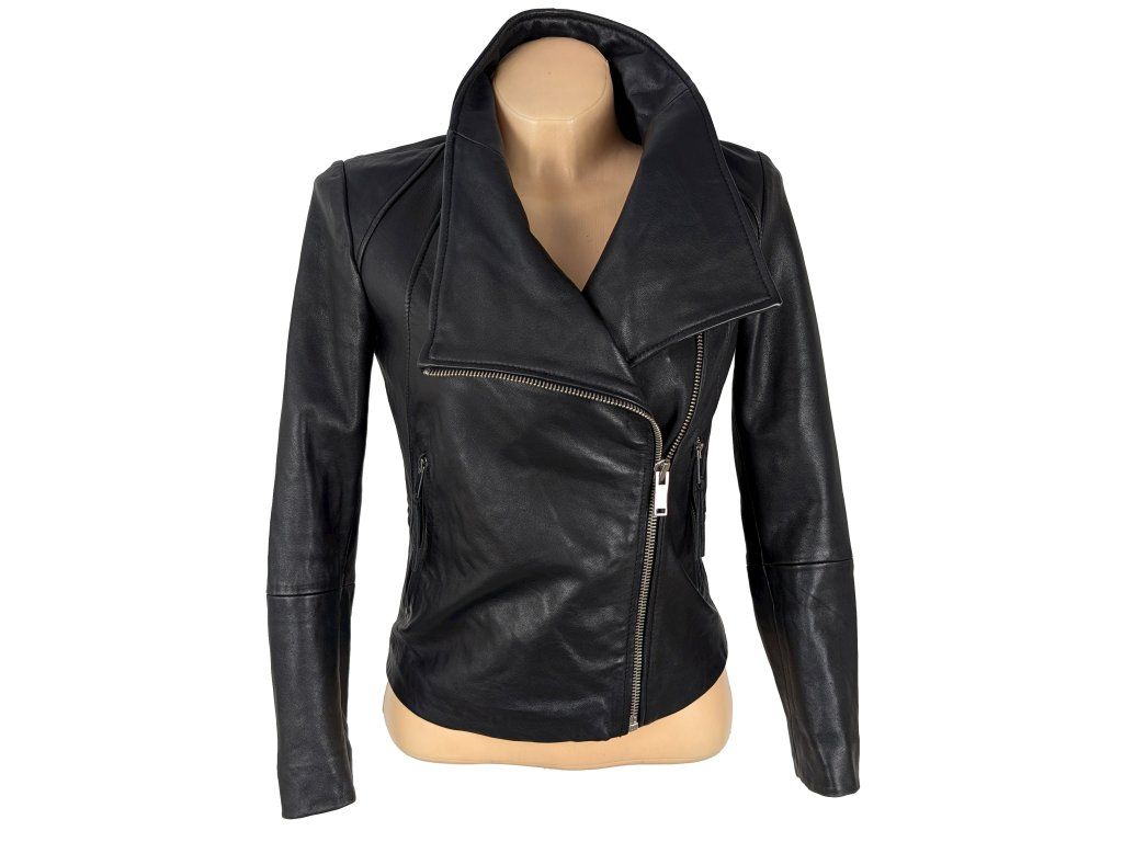 KOŽENÝ dámský černý křivák Mango XS
