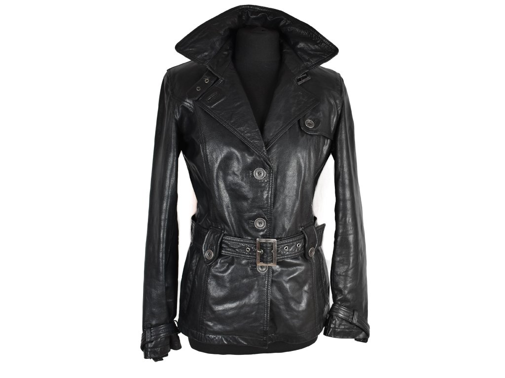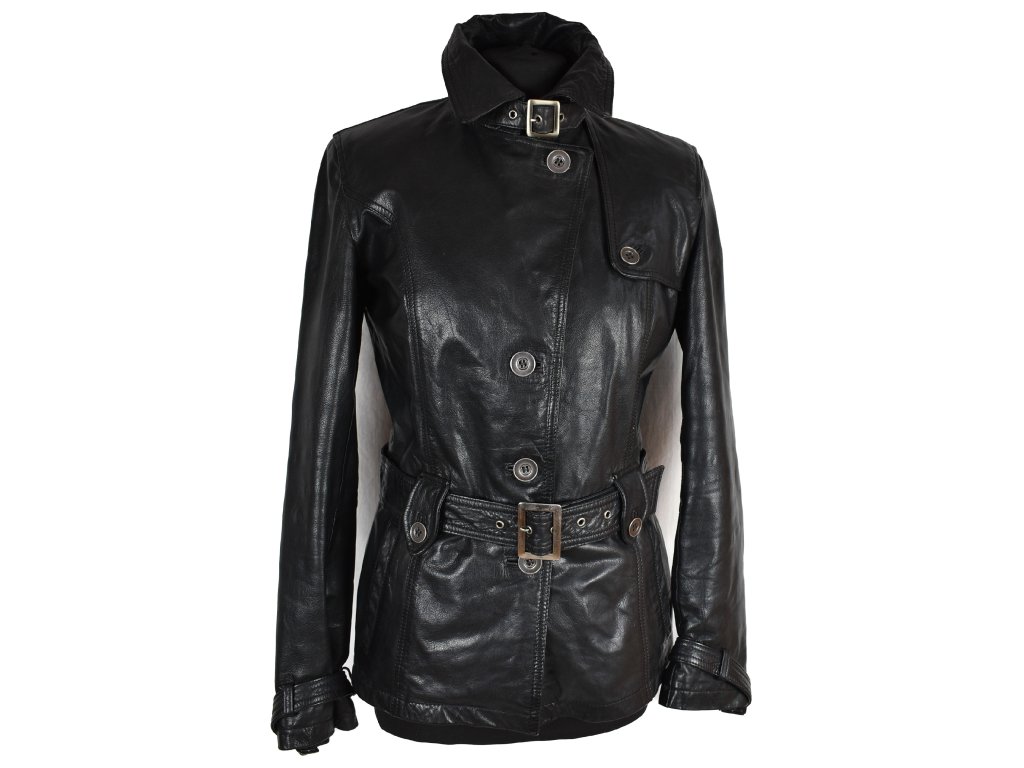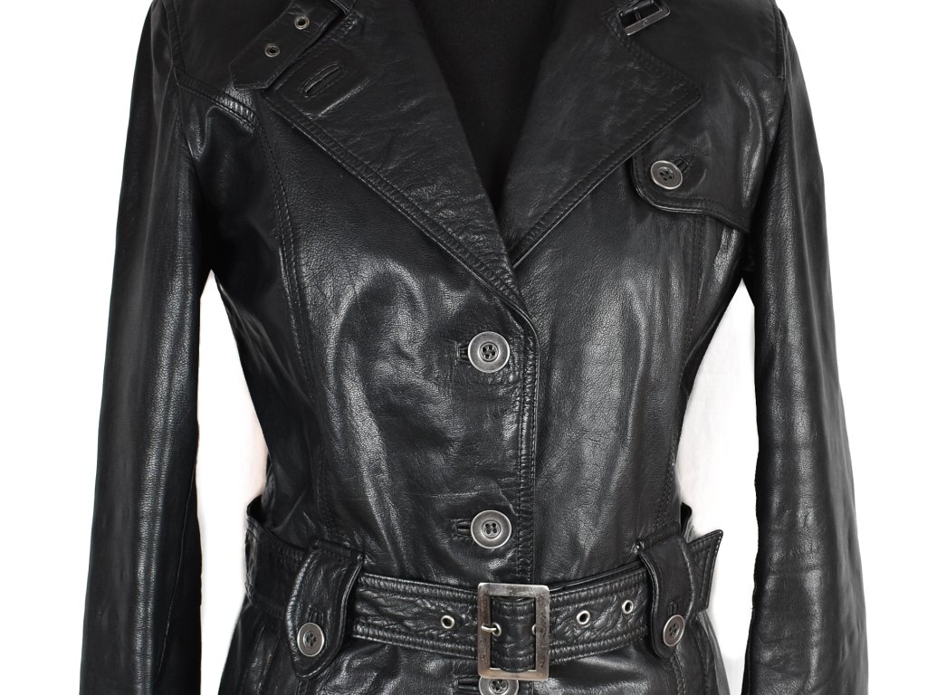 KOŽENÝ dámský černý měkký kabát s páskem KARA 36