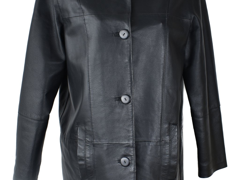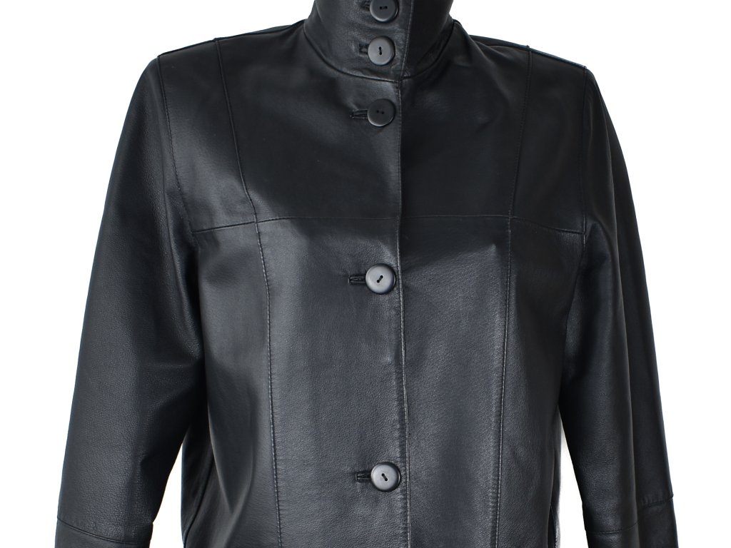 CERO, dámský kabát, kožený kabát, černý kabát se stojáčkem, měkká kůže