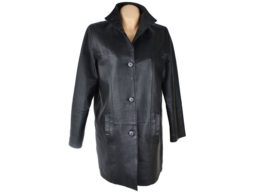 KOŽENÝ dámský černý měkký kabát se stojáčkem CERO L, XL, XXL