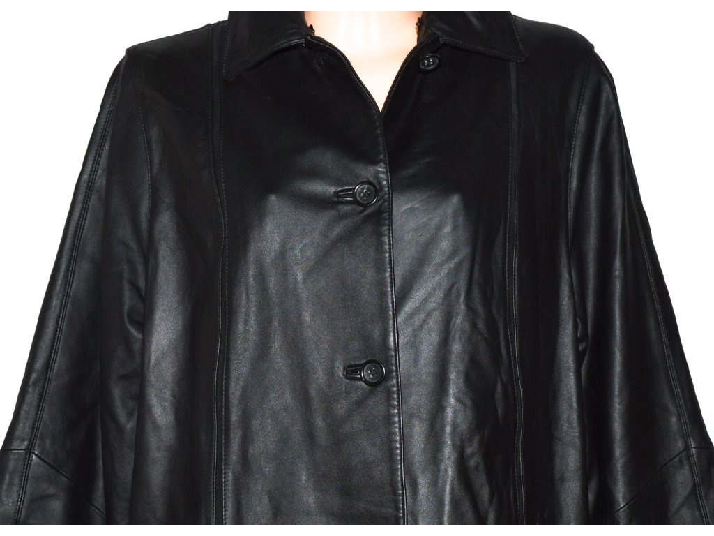 Fabiani, Kožený kabát, dámský černý kabát, velikost XXXL, měkká kůže, zateplený
