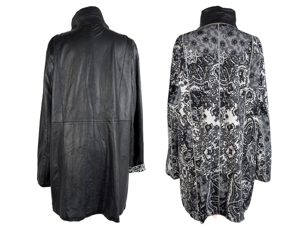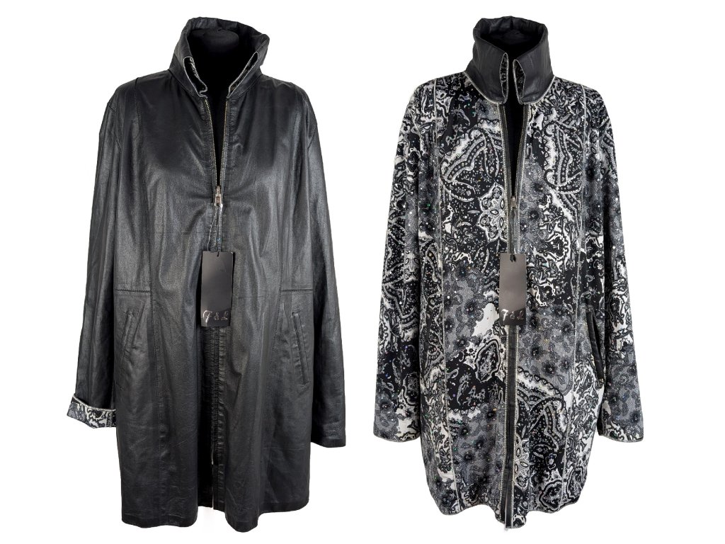 KOŽENÝ dámský černý oboustranný kabát na zip XXL