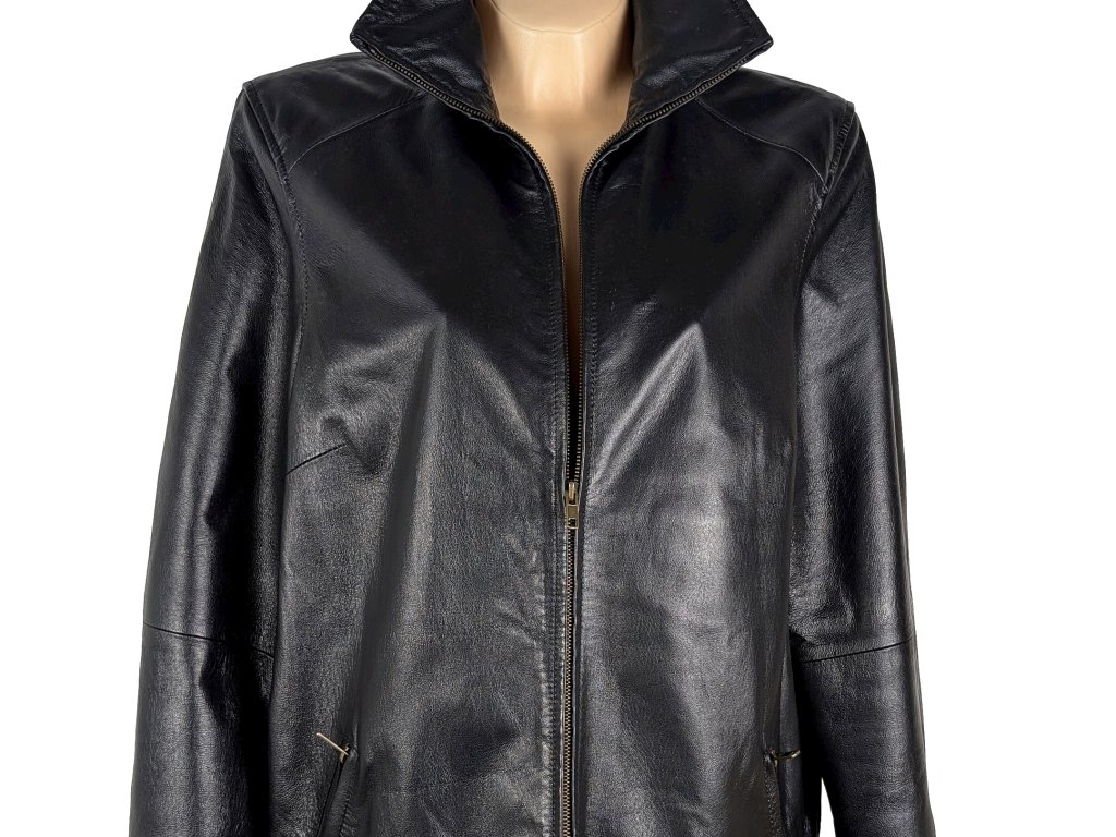 KOŽENÝ dámský černý zateplený kabát na zip Woodpecker XL