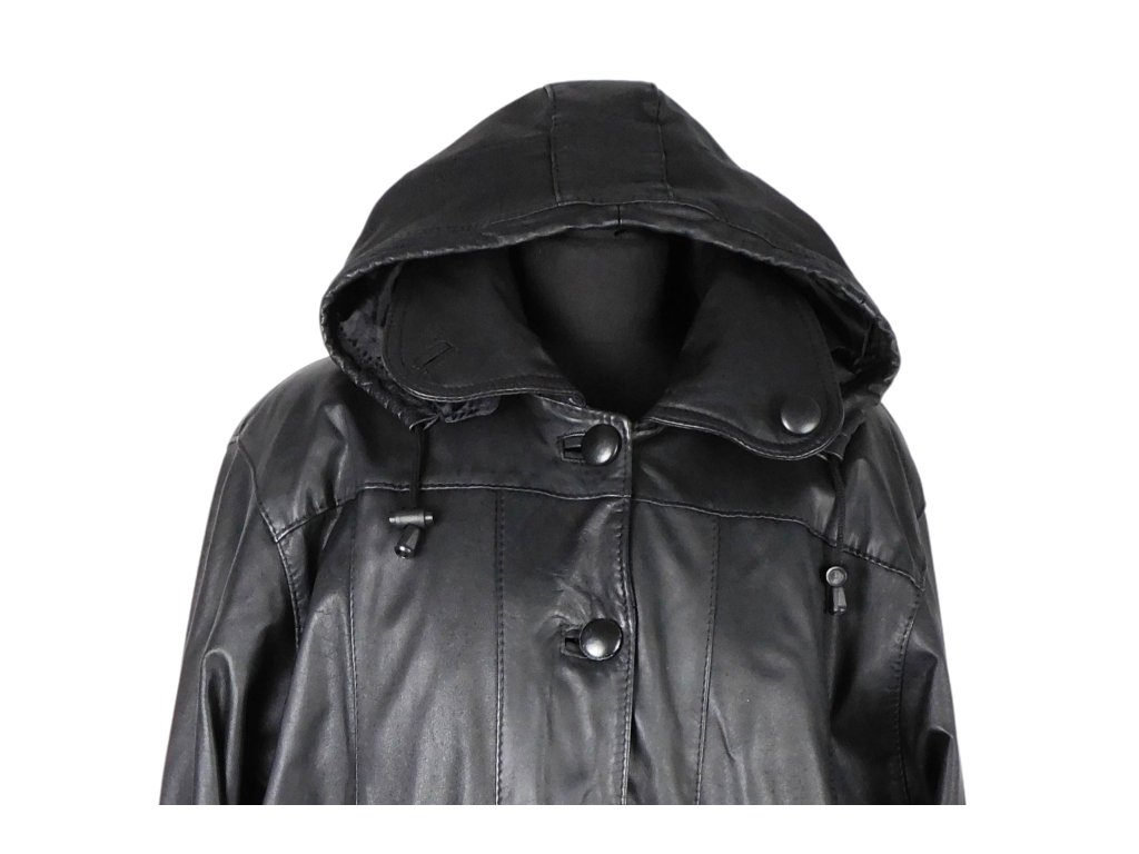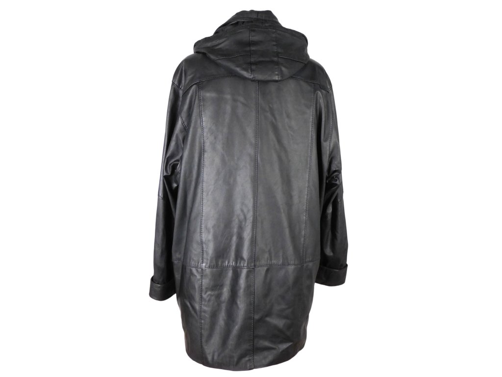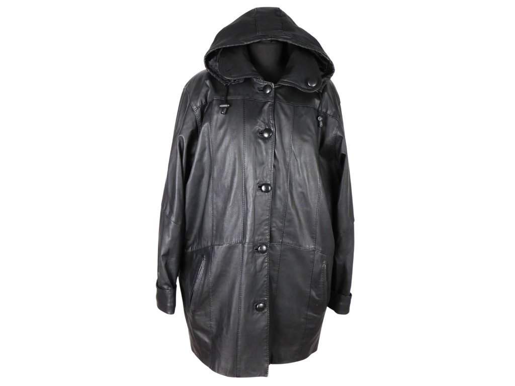 Kožený dámský černý zateplený kabát s kapucí XXXL*