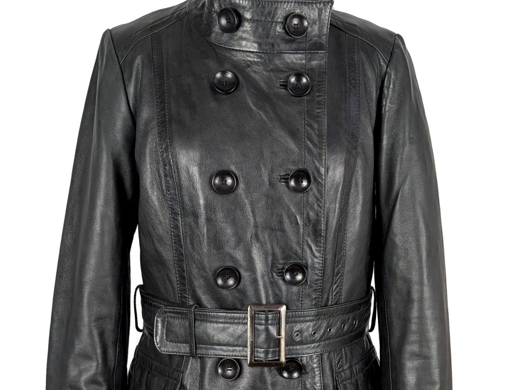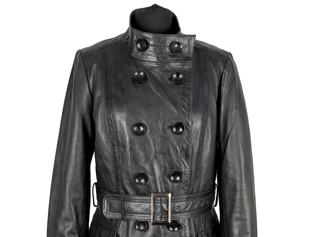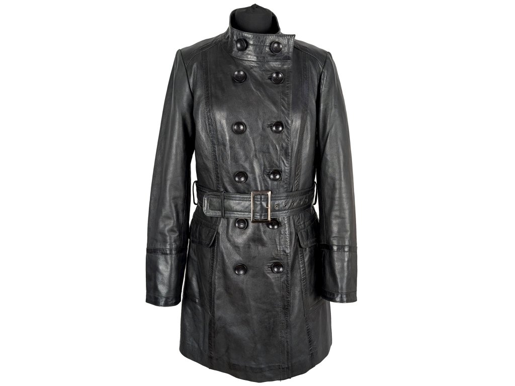 KOŽENÝ dámský černý zateplený kabát s páskem Apanage 12/38