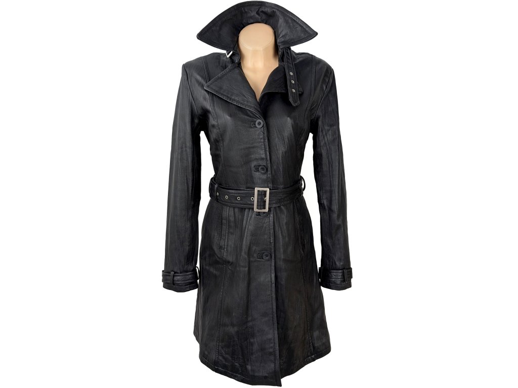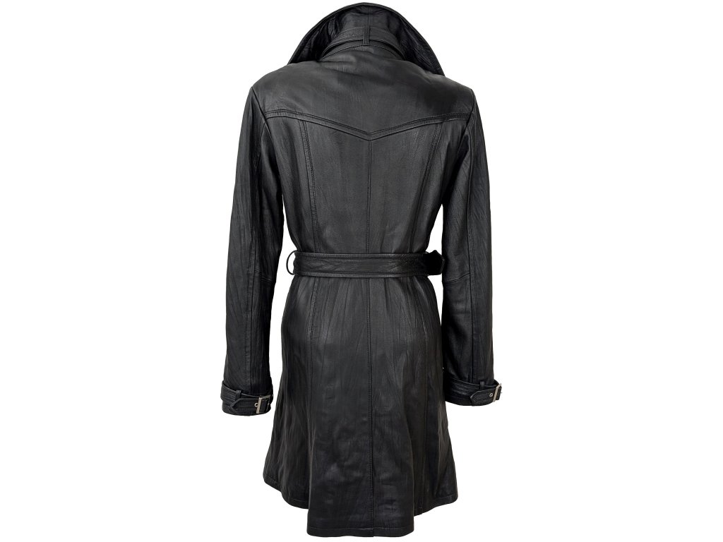 KOŽENÝ dámský černý zateplený kabát s páskem KARA L