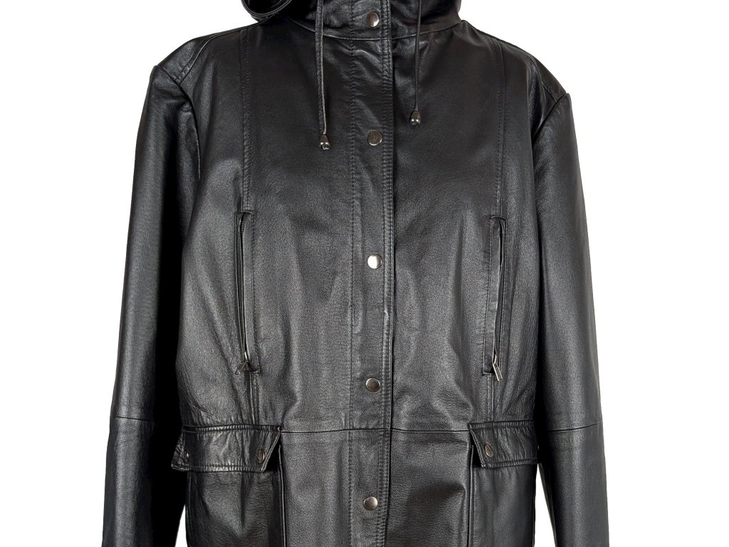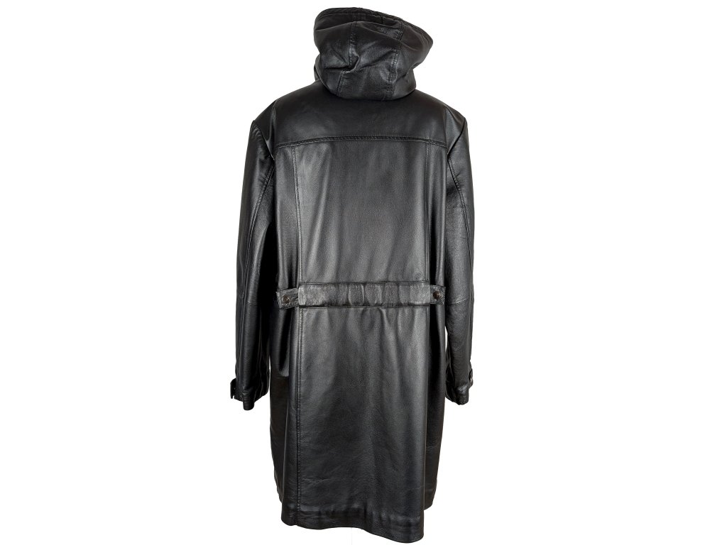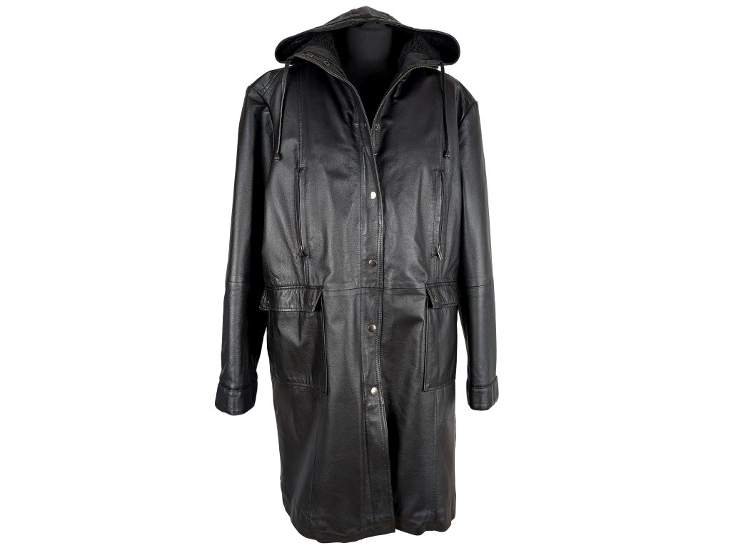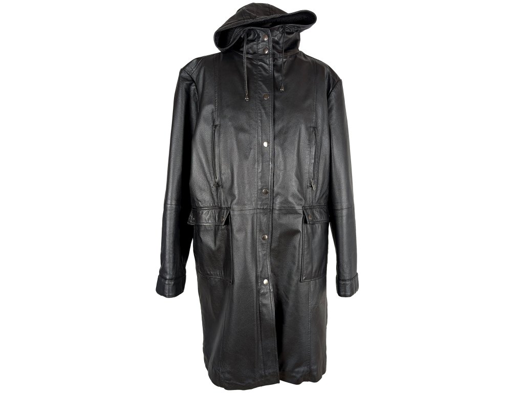 KOŽENÝ dámský černý zimní kabát s kapucí 46/20