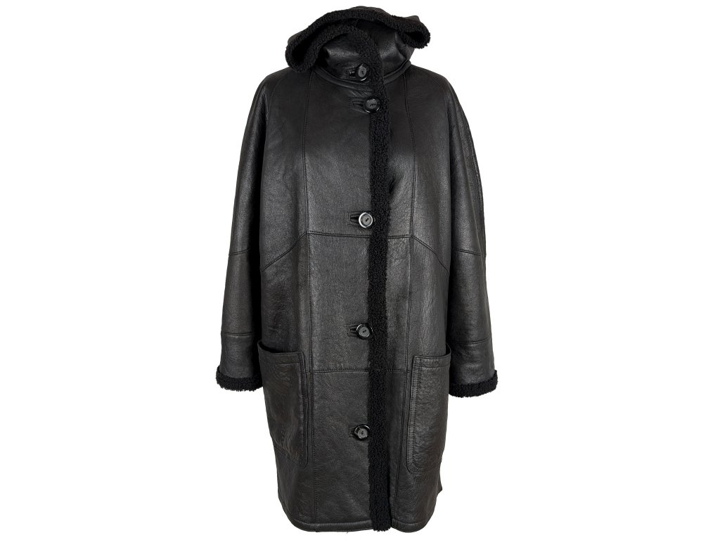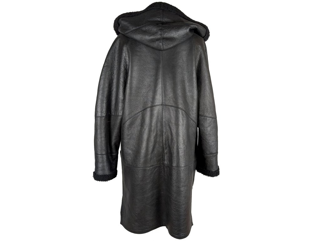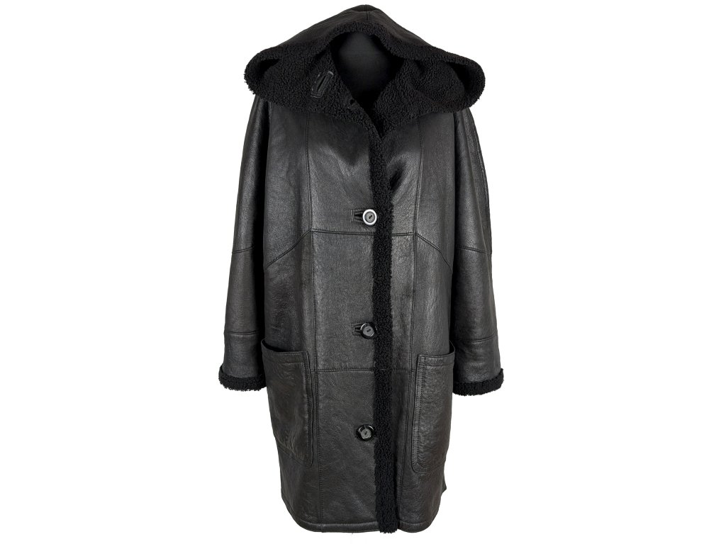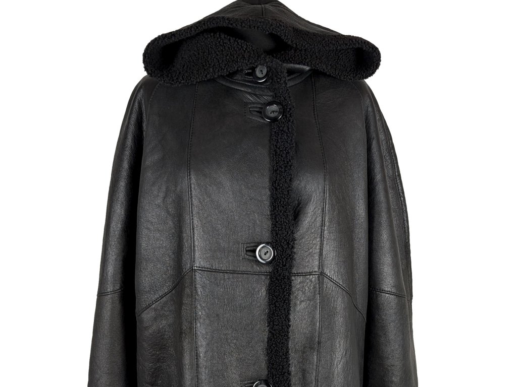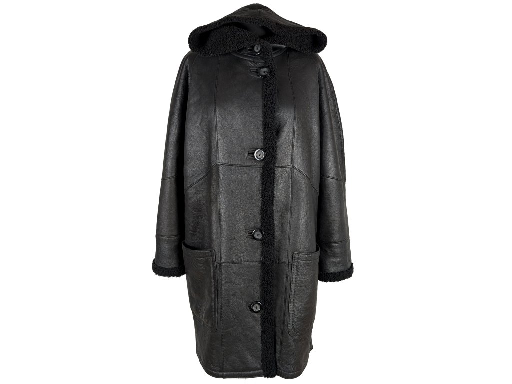 KOŽENÝ dámský černý zimní kabát s kapucí L