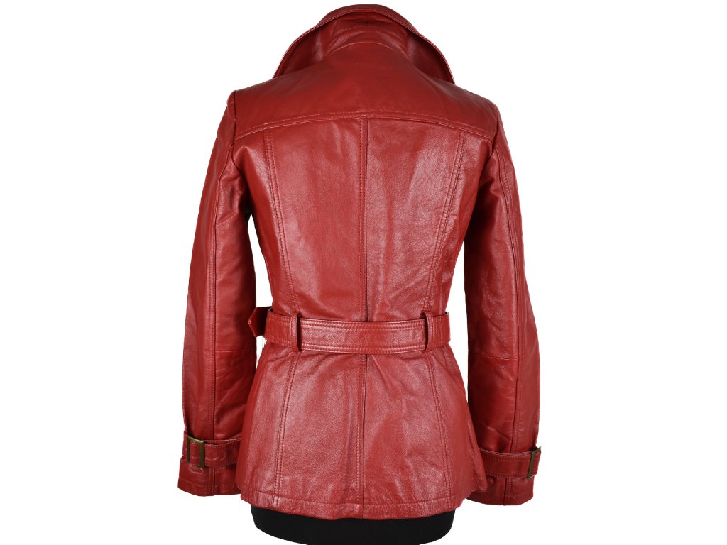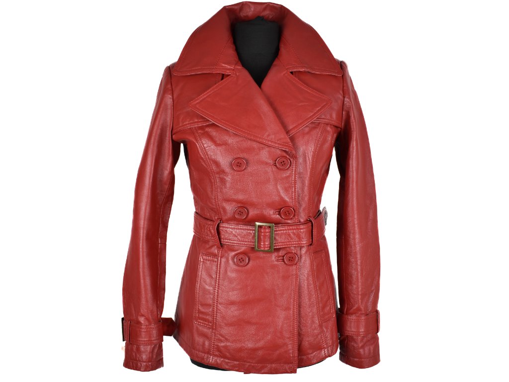 KOŽENÝ dámský červený kabátek s páskem Orsay 38