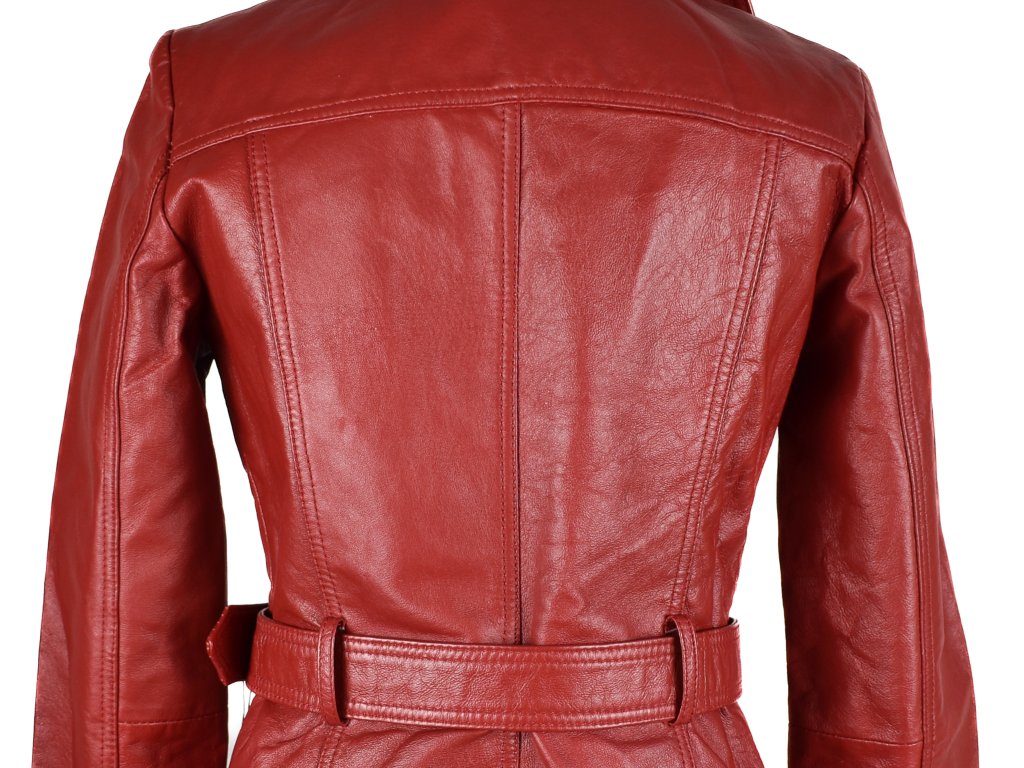 Orsay, kožený dámský červený měkký kabát s páskem
