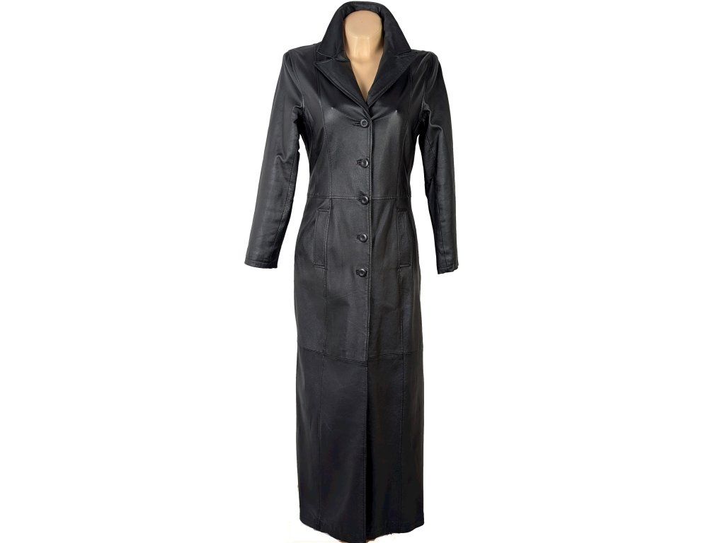 KOŽENÝ dámský dlouhý černý kabát CLOCKHOUSE S